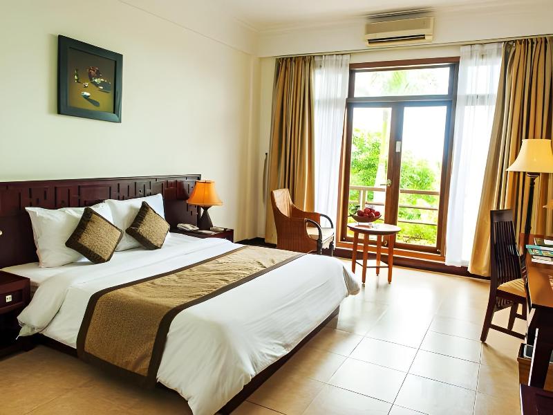Este encantador resort se encuentra ubicado en 29 hectáreas de jardines paisajísticos a lo largo de la prístina playa de Bao Ninh y el río Nhat Le. Situado en Dong Hoi, en el centro de Vietnam, este establecimiento familiar está a 30 km de las cuevas de Phong Nha, reconocidas por la UNESCO. El resort ofrece una variedad de alojamientos, incluyendo 20 villas frente al mar, 12 bungalows y 234 habitaciones y suites de estándar internacional, cada una con una espaciosa terraza que ofrece vistas al mar y privacidad. Las lujosas comodidades incluyen TV por cable/satélite, aire acondicionado con control individual, puertos para ordenador portátil, cajas de seguridad y baños con hidromasaje en las suites. Los baños disponen de ducha/bañera combinadas y secador de pelo. El resort cuenta con completas instalaciones recreativas, incluyendo piscinas al aire libre, una pista de tenis iluminada, un gimnasio y varios deportes acuáticos. También puedes disfrutar de vóley-playa, Tai Chi y aeróbic. Las opciones gastronómicas incluyen varios restaurantes internacionales que sirven una mezcla de cocina asiática y occidental.