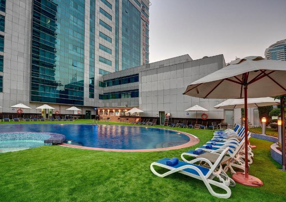 El Marina View alberga una piscina con tumbonas, un gimnasio moderno y una sauna.
