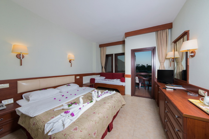 Se trata de un hotel muy popular, particularmente entre familias, gracias a su ambiente y comodidades adecuados para familias. Es un hotel consolidado, con un total de 206 habitaciones, incluidas 10 suites. Es muy famoso en Olu Deniz y es uno de los mayores hoteles de playa del complejo. Las instalaciones a disposicin de los huspedes incluyen una zona de vestbulo con servicio de recepcin y salida 24 horas, servicio de cambio de divisas, quiosco de prensa y saln de peluquera. Tambin hay una sala de TV y una zona de TV va satlite con una TV de pantalla grande; los ms jvenes pueden divertirse en el parque o club infantiles. Hay refrescos disponibles en el bar y el restaurante, y los huspedes tienen instalaciones para conferencias y conexin a Internet a su disposicin. Los huspedes tambin pueden hacer uso del servicio de lavandera (de pago) y hay aparcamiento a disposicin de los que lleguen en coche. Los huspedes tambin pueden alquilar bicicletas en el recinto (por un suplemento).