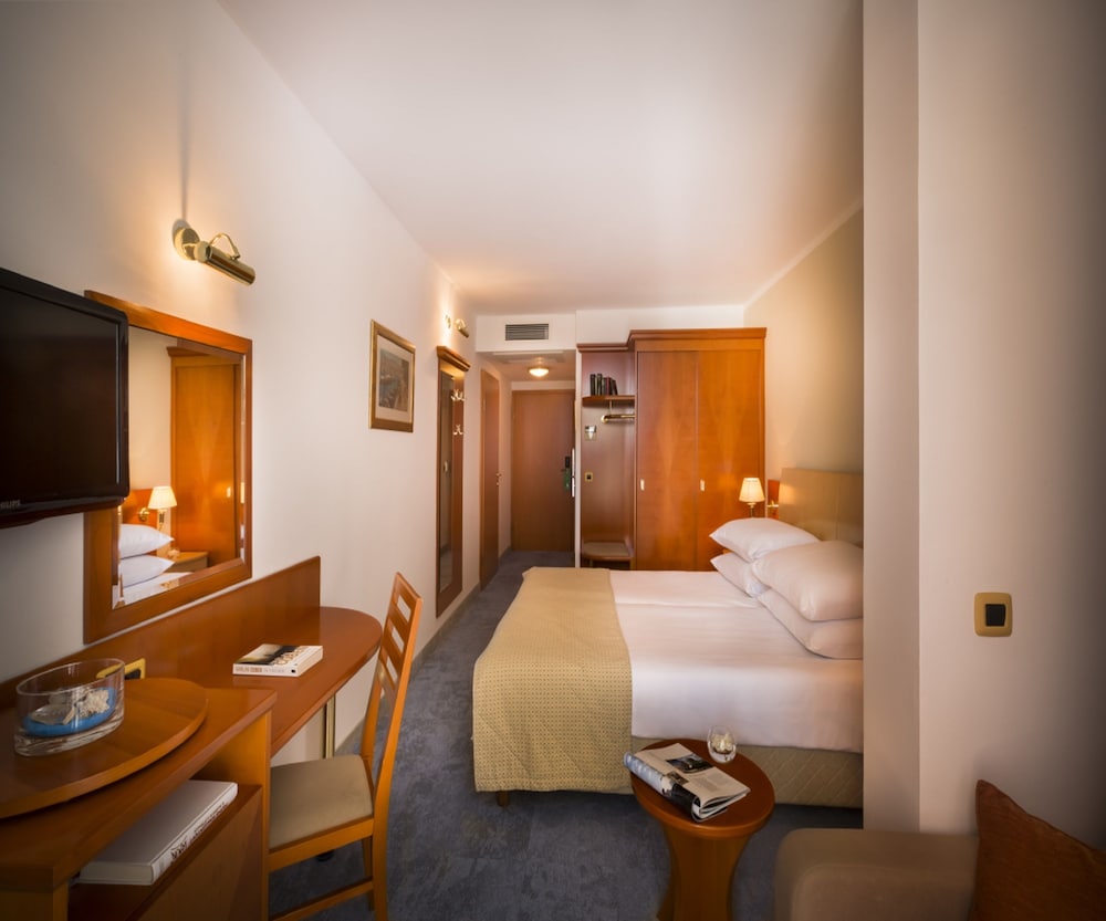 Las instalaciones y servicios incluyen restaurante, bares, piscinas, piscina infantil, spa y centro de bienestar (de pago), masajes (de pago) y aparcamiento (de pago). Se aceptan las principales tarjetas de crédito y también hay acceso Wi-Fi.Las habitaciones disponen de aire acondicionado/calefacción, baño con ducha, cuna bajo petición (de pago), caja fuerte, acceso Wi-Fi, TV vía satélite, teléfono, secador de pelo y minibar.Notas:* Cuna disponible bajo petición* El desayuno en Zvonimir comienza a las 7:00.* El primer servicio es una noche de alojamiento y el último es un almuerzo ligero.* La cama adicional en la habitación triple es un sofá cama* Piscinas cubiertas y al aire libre, centro de bienestar (con cargo adicional), gimnasio, servicio de cambio de divisas en el Sunny Baska Hotel, ex. CorinthiaDesayuno y almuerzo soleados de 7:00 a 14:00- Posibilidad de múltiples entradas al restaurante- Refrescos del dispensador incluidos durante las comidas (autoservicio)- Café de primera calidad (autoservicio)- Estaciones de bufé temáticas: zona de delicatessen de Istria/Isla, zona saludable, estación de café, platos de huevos preparados al momento, estaciones de almuerzo con una selección de comidas recién preparadas (sopas, ensaladas, pizzas, sándwiches, ensaladas, platos wok, carne y pescado a la parrilla, platos principales calientes, platos de verduras de temporada y dulces)Dirección: Emila Geistlicha 48, 51523 Baska, Isla de Krk, Croacia.