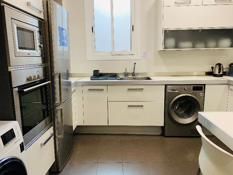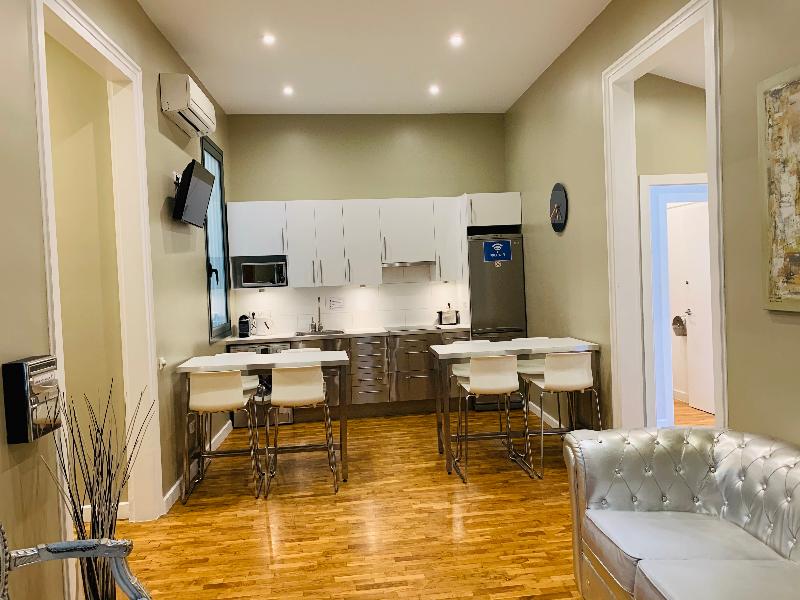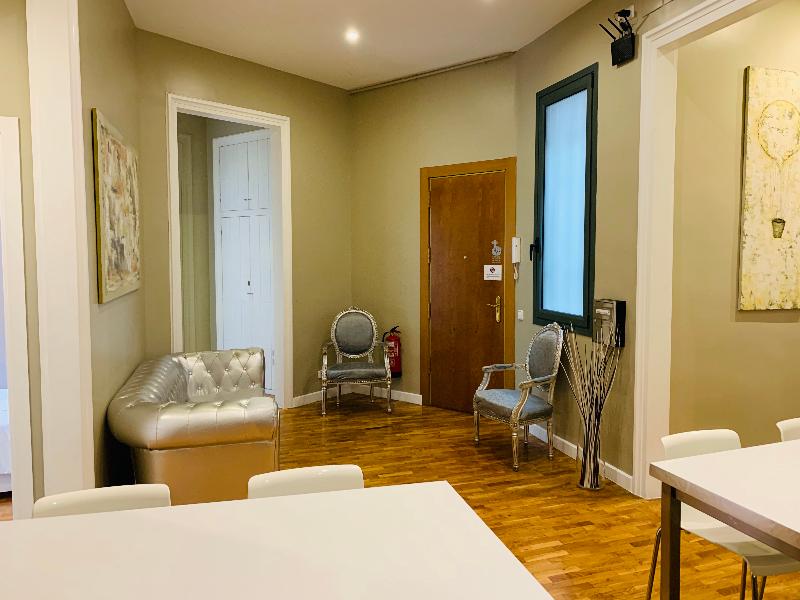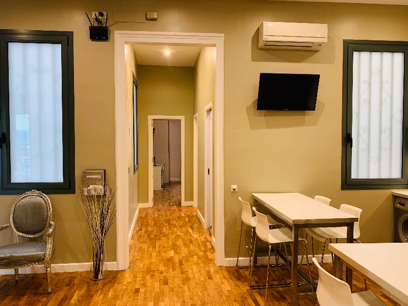 Este moderno apartamento de 4 dormitorios y 2 baños en el corazón de Barcelona aloja cómodamente a grupos y familias de 10 a 13 personas. El apartamento consta de dos habitaciones dobles y dos triples, cada una con camas individuales y un balcón privado. Dos cómodos sofás cama se encuentran en la espaciosa sala de estar. Una cocina totalmente equipada y un pequeño comedor ofrecen prácticas opciones para que puedas cocinar tus propias comidas. Los dos elegantes baños disponen de ducha, uno de ellos con bañera adicional. Las comodidades incluyen TV (con puertos USB y HDMI), wifi, calefacción y aire acondicionado centrales, lavadora y secadora, microondas, hervidor de agua, tostadora, cafetera espresso, secador de pelo y plancha. Se proporcionan sábanas y toallas. El apartamento goza de una magnífica ubicación, a solo 5 minutos a pie de Las Ramblas y Plaza Catalunya.