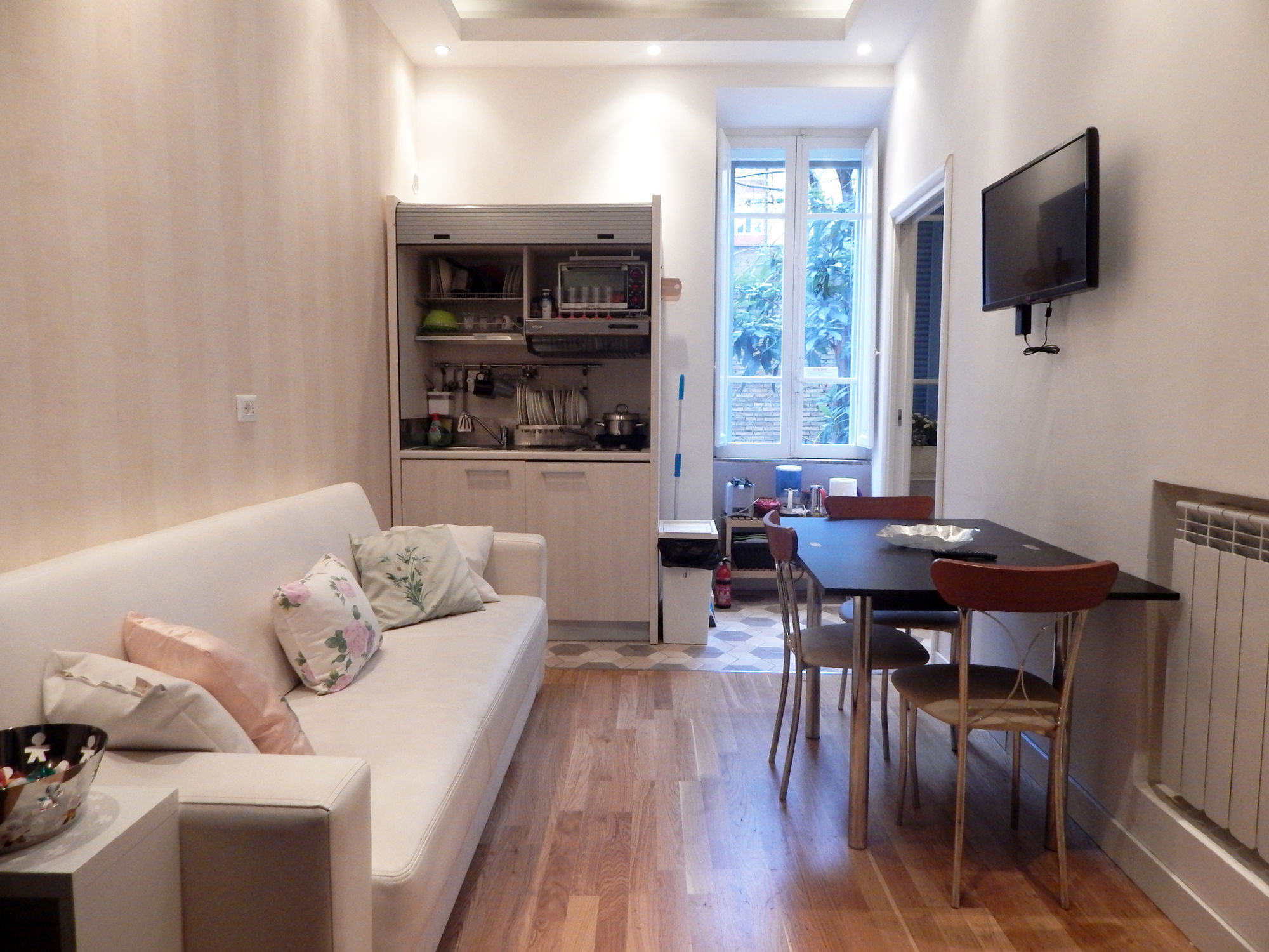 En Sweet Rome Apartment gozarás de una ubicación céntrica en Roma, a poca distancia de Museos Vaticanos y Basílica de San Pedro. Este complejo de apartamentos de lujo se encuentra cerca de Capilla Sixtina y de Plaza de San Pedro.Habitaciones Reserva una de las 2 habitaciones climatizadas, todas dotadas de cocina con frigorífico/congelador grande y horno. Descansa como nunca en una cama con edredón de plumas y sábanas italianas Frette. Las habitaciones disponen de balcón. Con televisor LED de 32 pulgadas y conexión a Internet wifi gratis, tienes para elegir a la hora de entretenerte.Servicios Aprovecha los prácticos servicios que se te ofrecen, como conexión a Internet wifi gratis o asistencia turística y para la compra de entradas.Para comer Aprovecha el servicio de habitaciones las 24 horas de este complejo de apartamentos.