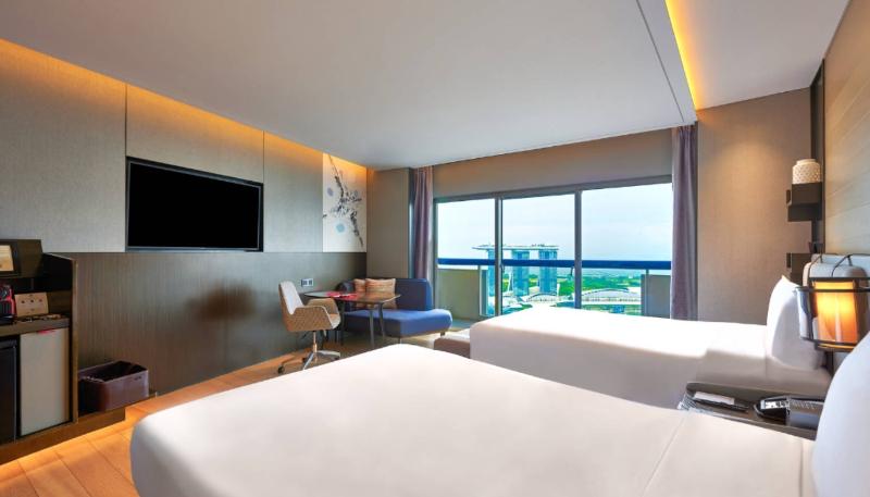 Nos hicieron el checkin enseguida, y desde el primer momento se hicieron cargo de las maletas y de explicarnos el funcionamiento del hotel. La habitación estaba en el piso 15 y no daba directamente a...