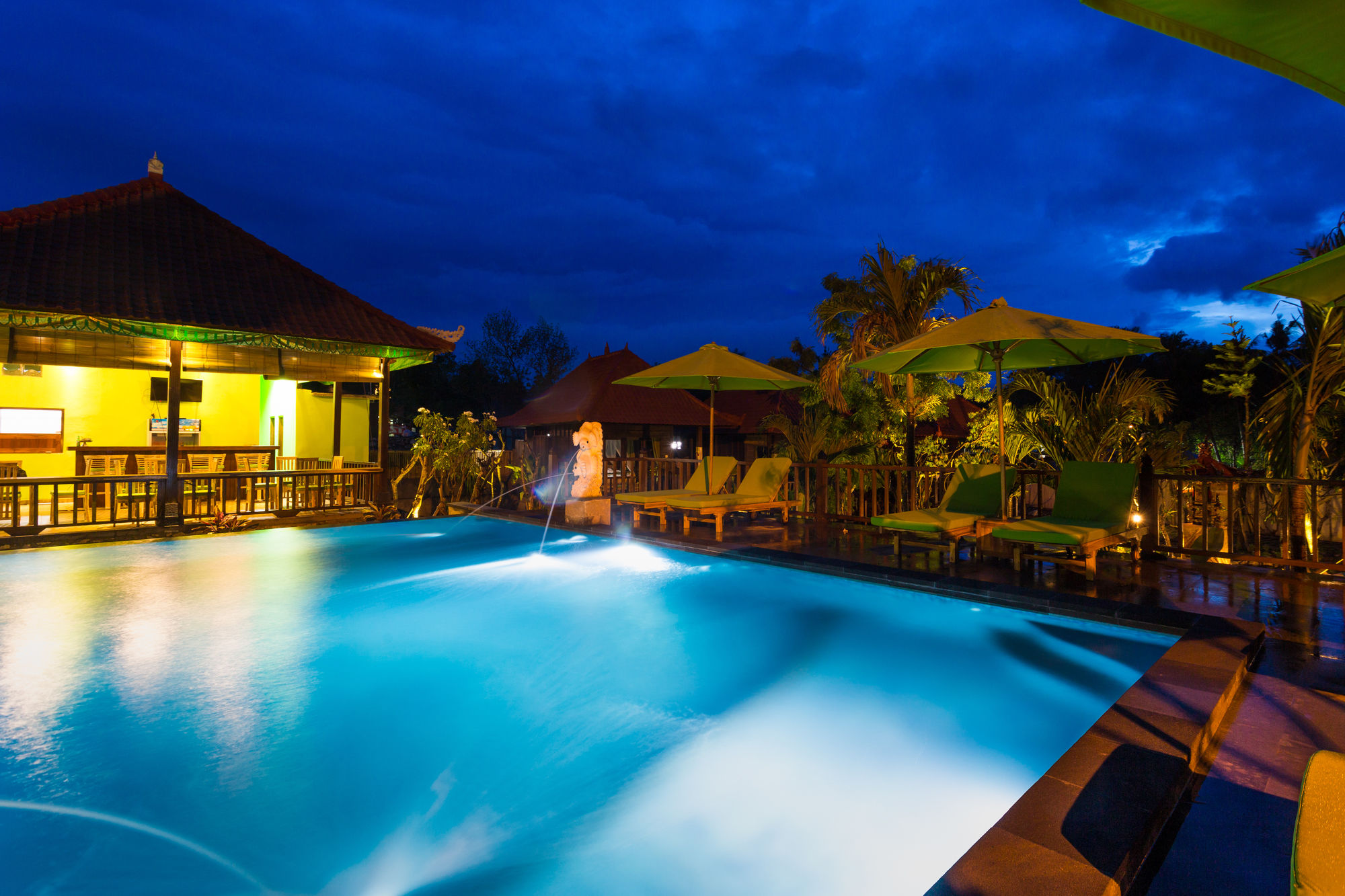 Si decides alojarte en Taman Sari Villas Lembongan, te encontrars en una fantstica zona de Isla Lembongan (Zona de Mushroom Bay) y a apenas 8min en coche de Playa Nusa Lembongan. Adems, este hotel se encuentra a 6,1km de Punta Mangrove. Te sentirs como en tu propia casa en cualquiera de las 6 habitaciones con aire acondicionado. Las habitaciones disponen de balcn o patio. Mantn el contacto con los tuyos gracias a la conexin a Internet wifi gratis. El cuarto de bao est provisto de ducha y artculos de higiene personal gratuitos. No te pierdas instalaciones recreativas como piscina al aire libre o bicicletas de alquiler: lo pasars en grande! Se ofrece adems conexin a Internet wifi gratis y asistencia turstica y para la compra de entradas. Si tienes hambre, pasa por el restaurante de este hotel, que ofrece almuerzos y cenas, o llama al servicio de habitaciones con horario limitado. Tendrs servicio de tintorera, depsito de equipaje y caja fuerte en recepcin a tu disposicin. Hay un aparcamiento sin asistencia gratuito disponible.