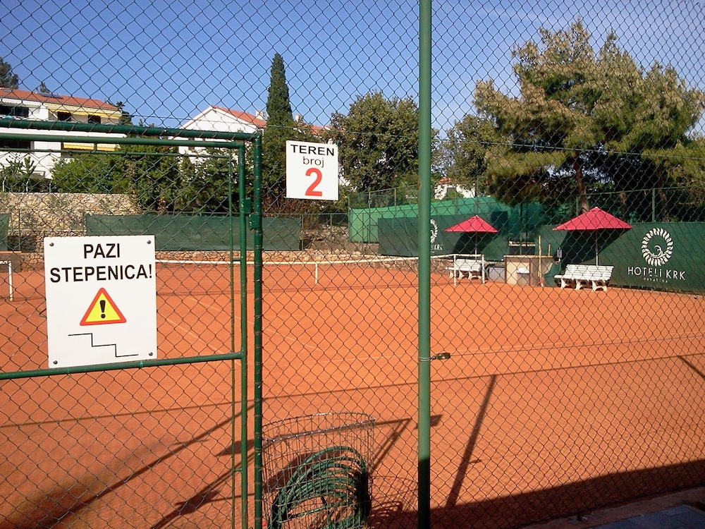 Si te alojas en Tamaris - Hotel Resort Drazica, en Krk (Isla Krk), estarás a pocos minutos de Playa Punta di Galetto y Playa de Drazica. Este hotel de playa se encuentra cerca de Castillo Frankopan y de Catedral de la Asunción.Habitaciones Te sentirás como en tu propia casa en una de las 26 habitaciones con aire acondicionado, frigorífico y televisor de pantalla plana. La conexión a Internet wifi gratis te mantendrá en contacto con los tuyos; también podrás ver tu programa favorito en el televisor con canales por cable. El cuarto de baño está provisto de ducha y artículos de higiene personal gratuitos. Las comodidades incluyen caja fuerte, además de un servicio de limpieza disponible todos los días y la posibilidad de solicitar cunas (de pago).Servicios Para tus ratos libres, tienes instalaciones recreativas como una pista de tenis exterior, gimnasio y piscina al aire libre de temporada a tu disposición.Para comer Todos los días se sirve un desayuno bufé gratuito.Servicios de negocios y otros Tendrás servicio de tintorería, lavandería y caja fuerte en recepción a tu disposición. Hay un aparcamiento sin asistencia (de pago) disponible.