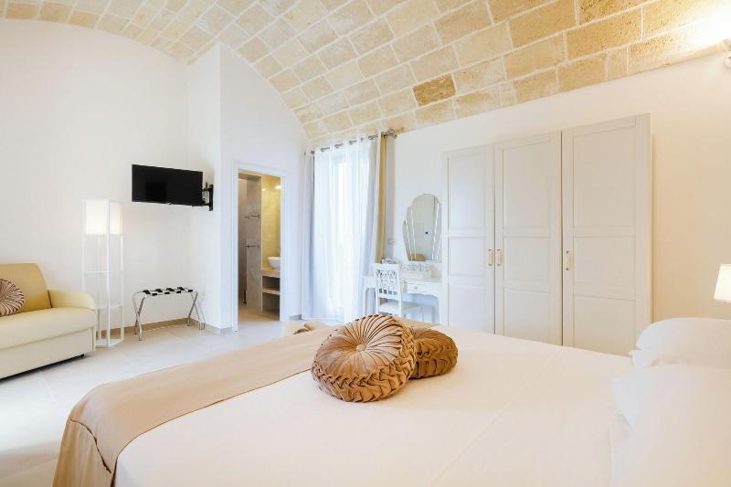 Disfruta de opciones recreativas como alquiler de bicicletas, una terraza y un jardín en Tenuta Dorolivo Guest House e B&B. Este bed and breakfast en Giurdignano, situado dentro de un parque provincial, ofrece wifi gratis, servicios de conserjería y para bodas, y un desayuno continental diario de 8:30 a 10:00 h. Las habitaciones cuentan con minibar, cafeteras espresso, camas con memory foam, edredones de plumas y sábanas de algodón egipcio, y Smart TVs de 32 pulgadas. Los baños privados incluyen duchas de efecto lluvia y artículos de tocador gratuitos. La propiedad se encuentra a poca distancia en coche de Otranto Waterfront y la Cripta de San Salvatore, y ofrece fácil acceso a otras atracciones locales.