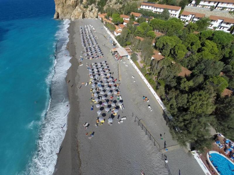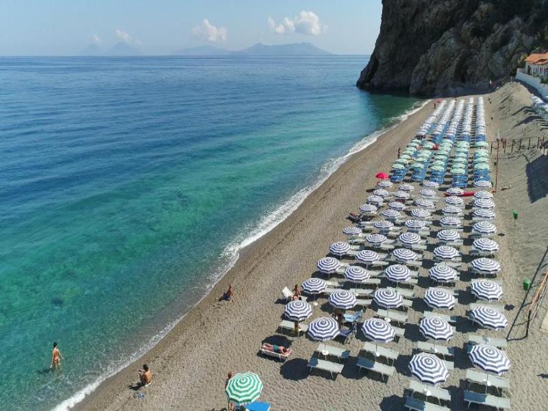 Una obra maestra de la naturaleza con vistas directas a la costa más cercana a las Islas Eolias, el Village se encuentra entre Capo Schino y la Roca de Capo Calavà, una de las playas más fascinantes de la Costa Sarracena. Desde aquí es posible disfrutar de una vista excepcional y presenciar atardeceres inolvidables gracias a la transparencia del mar. El Village parece una pequeña aldea compuesta por varios edificios de ladrillo, rodeada por un jardín de olivos centenarios que desciende hasta el mar. Las habitaciones se distribuyen entre el edificio principal y a lo largo de pequeñas avenidas inmersas en el verde de la maquia mediterránea, y están decoradas con un estilo sencillo y refinado. Todas están equipadas con baño privado con ducha, aire acondicionado, TV, caja fuerte, teléfono, secador de pelo y minibar (servicio de reposición de pago y bajo petición). Muchos servicios como: aparcamiento privado sin vigilancia, consigna de equipaje, custodia de objetos de valor, asistencia médica en horarios establecidos, wifi en zonas comunes, teatro, traslados desde y hacia los principales aeropuertos, sala de conferencias, excursiones, boutique.