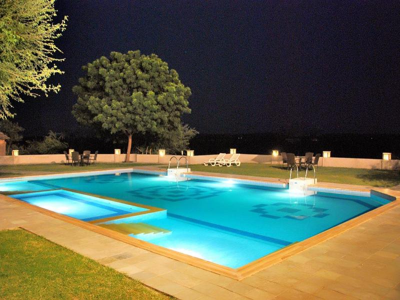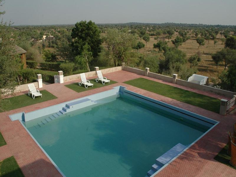 Situado en Mandawa, en la región de Shekhawati de Rajastán, este complejo con aire acondicionado ofrece 60 habitaciones, incluyendo cabañas y espaciosas suites de lujo, a solo 14 km de la estación de tren de Mukundgarh y a 180 km del Aeropuerto Internacional de Jaipur. Evocando el romanticismo del desierto, la arquitectura del complejo recrea un pueblo tradicional de Rajastán, un oasis verde en medio del austero paisaje. Los huéspedes disfrutan de recepción 24 horas, cambio de divisas y sala de juegos. Quienes viajan por negocios pueden utilizar las instalaciones para conferencias y el acceso a internet. Las comodidades adicionales incluyen una cafetería, bar, servicio de habitaciones, servicio de lavandería y estacionamiento en las instalaciones. Cada habitación presenta un estilo distintivo, con exteriores adornados con patrones tradicionales de mandana de pasta de lima que se renuevan a diario e interiores decorados con espejos y cuentas de vidrio. Las comodidades modernas incluyen baños en suite, camas dobles o extragrandes, TV vía satélite, acceso a internet, minibar y servicio de té/café. Los huéspedes pueden relajarse con un masaje en el centro ayurvédico o disfrutar de la piscina al aire libre y la sala de billar.
