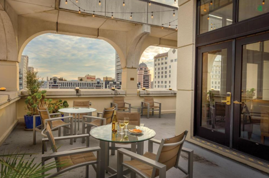 El hotel cuenta con un centro de bienestar que incluye gimnasio, sauna y jacuzzi, además de una terraza en la azotea con vistas a la ciudad. En el restaurante Zingari Ristorante se puede disfrutar de auténtica cocina italiana acompañada de música jazz en vivo. Su ubicación privilegiada permite acceder fácilmente a atracciones como Chinatown, el Museo de Arte Moderno y el centro de convenciones Moscone.