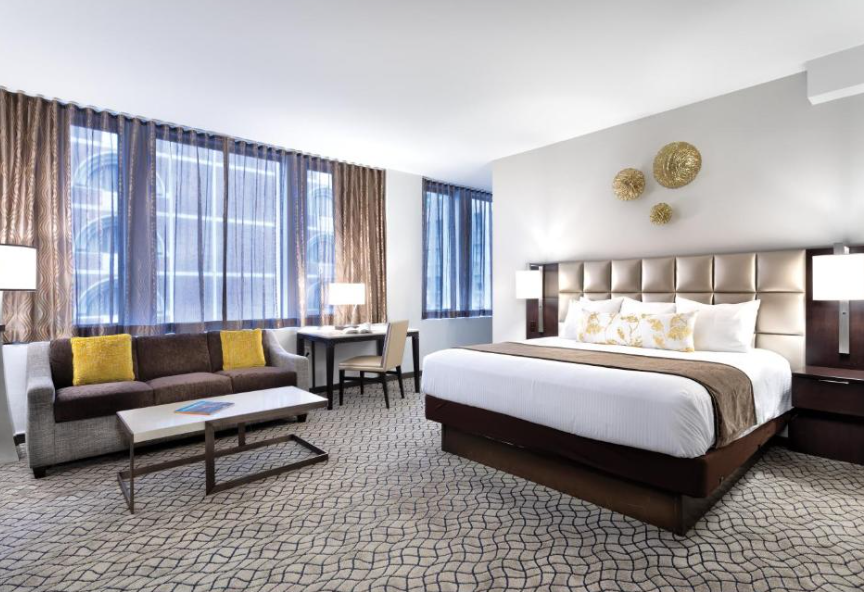 The Donatello es un elegante hotel boutique de inspiración renacentista situado a solo una cuadra de Union Square, en el corazón de San Francisco. Sus amplias habitaciones tipo estudio, con techos altos y decoración europea, ofrecen comodidades como cocina americana equipada y sofá cama.