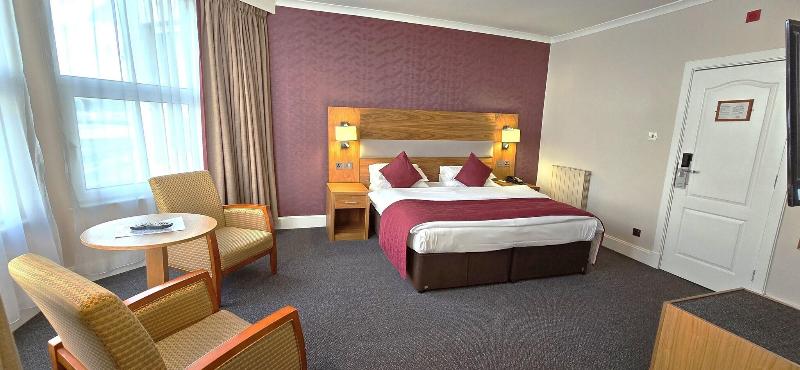El Empress Hotel goza de una ubicación privilegiada y práctica en Douglas, capital de la Isla de Man. Disfruta de vistas ininterrumpidas al mar y se ha mantenido a un nivel excepcionalmente alto, merecedor de su nueva calificación de 4 estrellas. El hotel cuenta con un gran invernadero en la parte delantera, con vistas panorámicas de la bahía de Douglas y 104 habitaciones reformadas y bien equipadas, incluyendo habitaciones con vista al mar, una suite y el ático en la última planta. Las instalaciones del hotel incluyen el renovado Brasserie Restaurant para una cena tradicional a la carta de alta calidad y el renovado The Piano Bar, que está abierto todo el día con muchos asientos con vistas al mar y ofrece comidas de bar hasta las 21:30 todos los días. Nuestro pianista toca hasta 4 noches a la semana, y también se transmiten eventos deportivos importantes de Sky Sports en el bar. Las instalaciones de ocio están actualmente cerradas hasta nuevo aviso.