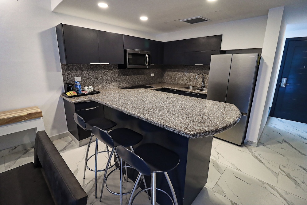 Las instalaciones y servicios incluyen acceso a Internet, recepción las 24 horas, lavandería, servicio de planchado, centro de negocios (cargo adicional), salas de reuniones (cargo adicional), piscina, gimnasio, masajes, spa (cargo adicional), conserjería, bar, restaurante y servicio de traslado (cargo adicional).Las características de la habitación incluyen aire acondicionado, radio, teléfono, TV, terraza, ducha, secador de pelo, minibar, bañera, toallas y caja fuerte.Dirección: Acceso Xcalacoco s/n. Fracc. El Limonar 1, Playa del Carmen, Quintana Roo, México, El Marlyn Azul, Playa Del Carmen, México, 77710