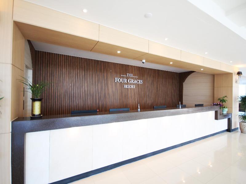 El Four Graces Resort en Seogwipo (Seongsan) ofrece una piscina exterior de temporada, terraza y wifi gratis. Los huéspedes pueden disfrutar de comidas en el restaurante/cafetería del hotel, y el desayuno continental está disponible por un suplemento. También se ofrecen un centro de negocios, registro de salida exprés y recepción 24 horas. Hay aparcamiento gratuito disponible. Las 144 habitaciones cuentan con televisores de pantalla plana, programación por cable y wifi gratis. Los huéspedes tienen acceso a una cocina compartida para preparar comidas, y los baños privados incluyen duchas, artículos de aseo gratuitos y secadores de pelo. El hotel se encuentra a 5 minutos en coche de Seongsan Ilchulbong y de la terminal de pasajeros Seongsan Pohang, convenientemente ubicado cerca de varias playas y atracciones. También está a poca distancia en coche del Aeropuerto Internacional de Jeju (CJU).