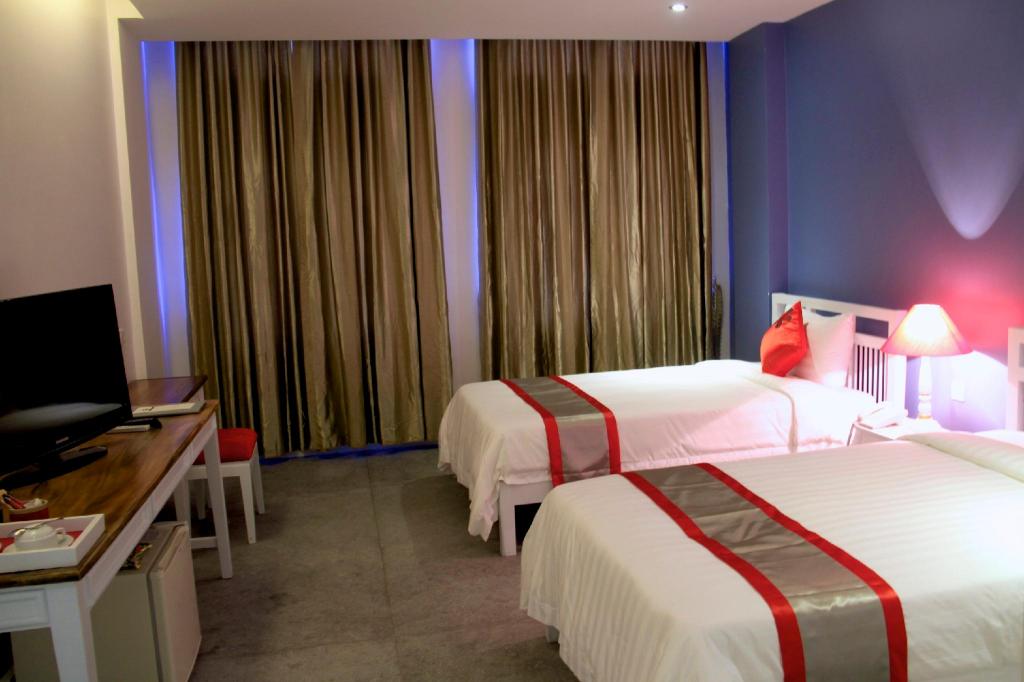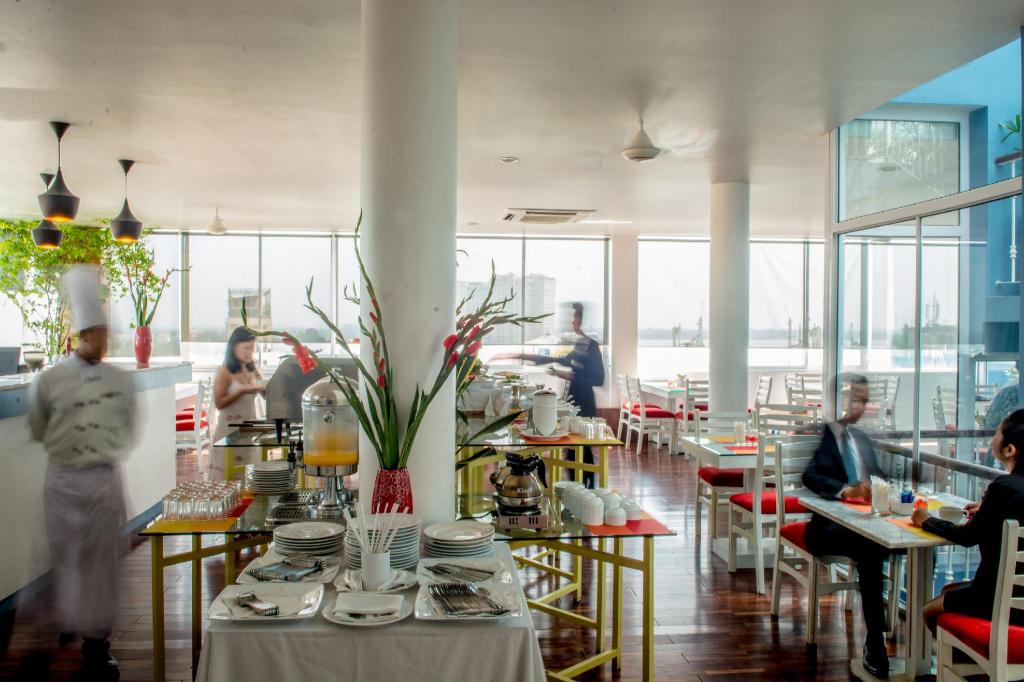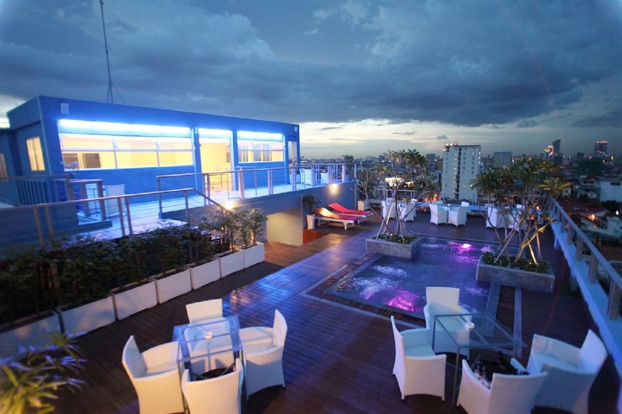 Alojándote en The Frangipani Living Arts Hotel & Spa estarás en pleno corazón de Phnom Penh, a pocos pasos de Mercado Tuol Tom Pong y de Museo de Genocidio Tuol Sleng. Este hotel de 4 estrellas se encuentra muy cerca de Teatro Sovanna Phum y Centro comercial AEON.Habitaciones Te sentirás como en tu propia casa en una de las 123 habitaciones con decoraciones diferentes, dotadas de frigorífico y minibar. Las camas cuentan con colchones con una capa de acolchado adicional para descansar plácidamente. Las habitaciones disponen de balcón. La conexión a Internet wifi gratis te permite comunicarte con los tuyos, y en tus ratos libres podrás entretenerte con el televisor LCD de 24 pulgadas con canales por satélite. El baño privado con ducha y bañera combinadas está provisto de artículos de higiene personal de diseño y secador de pelo. Para un relax sin igual, nada como una visita al spa, que ofrece masajes, tratamientos corporales y tratamientos faciales. En este hotel de estilo Art decó encontrarás también conexión a Internet wifi gratis, servicios de conserjería y asistencia turística y para la compra de entradas. Recorre rápida y cómodamente las principales atracciones de la zona gracias al servicio de transporte (de pago).Para comer Siéntate a comer algo en el restaurante de este hotel, que ofrece vistas a la piscina o aprovecha el servicio de habitaciones las 24 horas. Disfruta de tu bebida favorita en el bar o lounge o en el bar junto a la piscina. Todos los días se sirve un desayuno bufé gratuito.Servicios de negocios y otros Tendrás centro de negocios, servicio de limusina o coche con chófer y una zona de ordenadores a tu disposición. Las instalaciones para eventos de este hotel incluyen zonas para conferencias y salas de reuniones. Se ofrece servicio de transporte al aeropuerto (ida y vuelta) de pago (a petición).