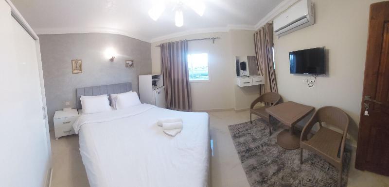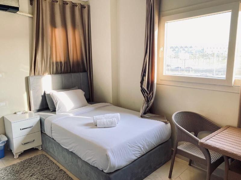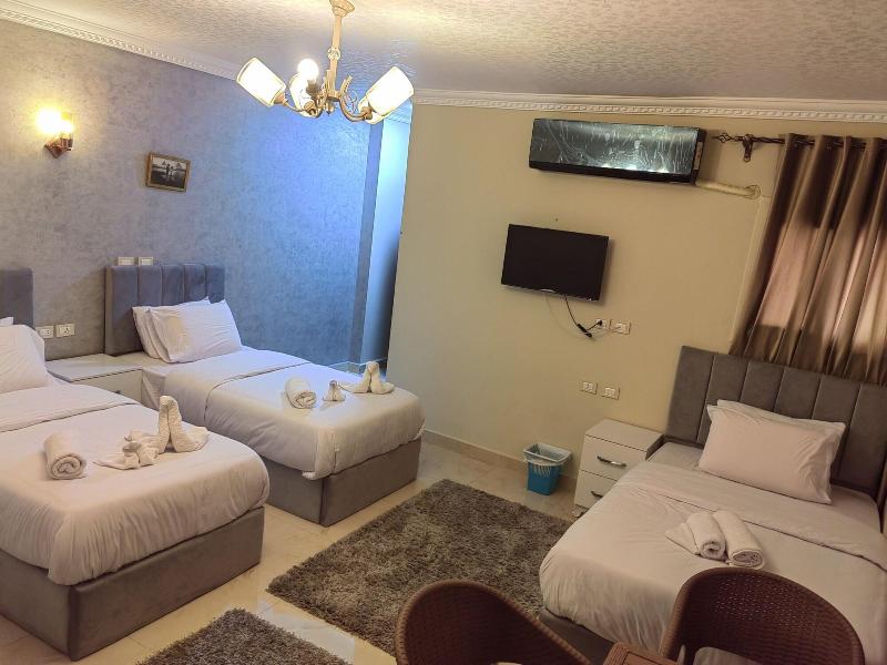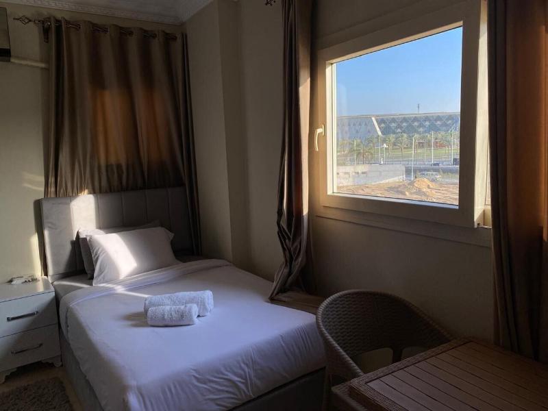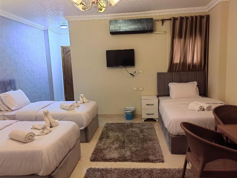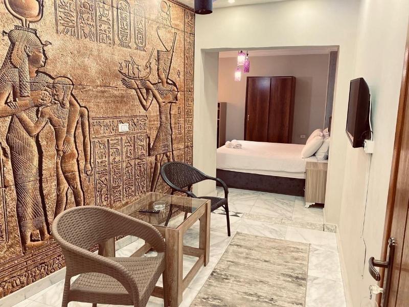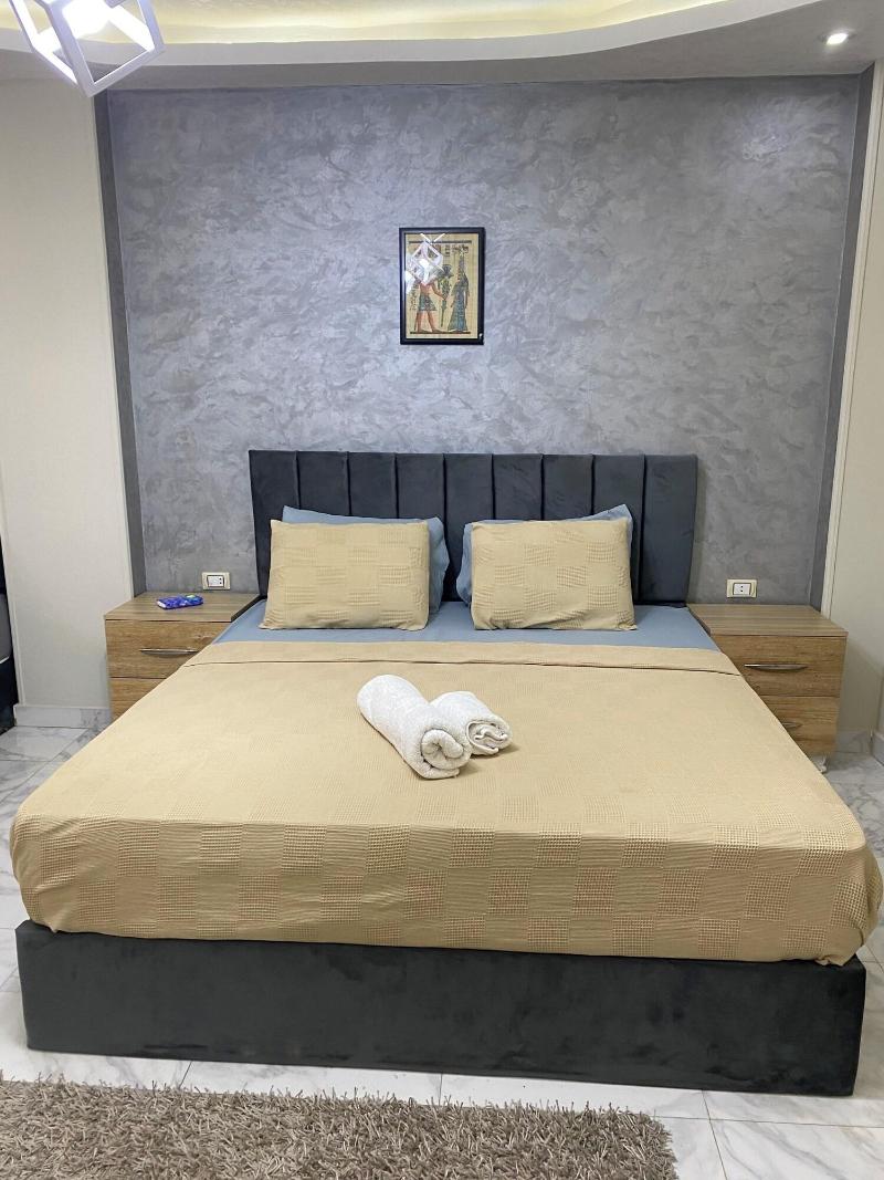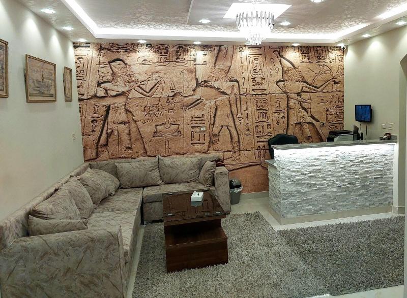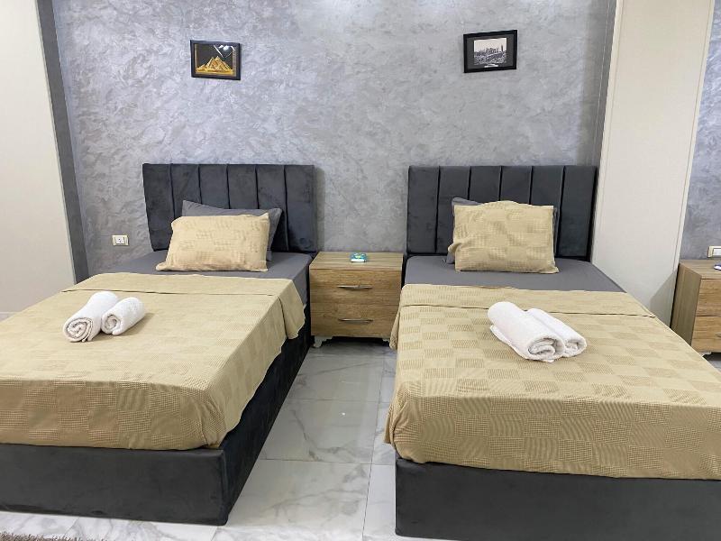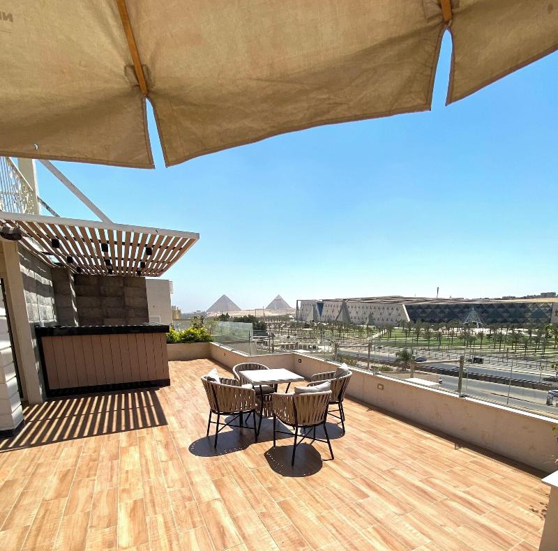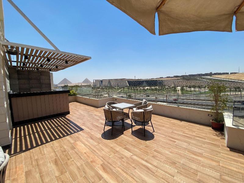 Disfruta de las vistas desde la azotea y aprovecha las comodidades, como el acceso inalámbrico a internet de cortesía y una sala de estar común. Este apartotel también ofrece asistencia para la compra de tours y entradas, y un vestíbulo. Se sirve desayuno autoservicio de lunes a viernes de 7:30 a 11:30, con cargo. Entre los servicios destacados se incluyen una estación de computadoras, check-in exprés y check-out exprés. Se ofrece traslado al aeropuerto (ida y vuelta) con cargo (disponible las 24 horas) y estacionamiento sin valet parking gratuito en las instalaciones. Date el gusto de alojarte en una de las 5 habitaciones con decoración personalizada, que incluyen jacuzzi privado interior y televisores LCD. Tu cama Select Comfort incluye edredones de plumas y sábanas de algodón egipcio. Prepara tus comidas en la cocina compartida/común. El acceso inalámbrico a internet de cortesía te mantiene conectado y la programación por satélite te ofrece entretenimiento. Las distancias se muestran con una precisión de 0, 1 millas y kilómetros. Grand Egyptian Museum: 0, 9 km / 0, 6 mi- Complejo de Pirámides de Guiza: 3, 3 km / 2 mi- Pirámide de Keops: 3, 6 km / 2, 3 mi- Meseta de Guiza: 4 km / 2, 5 mi- Pirámide de Kefrén: 4, 2 km / 2, 6 mi- Teatro de Luz y Sonido: 4, 6 km / 2, 9 mi- Gran Esfinge de Guiza: 4, 6 km / 2, 9 mi- Pirámide de Keops: 4, 7 km / 2, 9 mi- Pirámide de Micerino: 4, 9 km / 3 mi- Museo Taha Hussein: 9 km / 5, 6 mi- Universidad de El Cairo: 11, 9 km / 7, 4 mi- Zoológico de Guiza: 12, 2 km / 7, 6 mi- Aldea Faraónica del Dr. Ragab: 12, 3 km / 7, 6 mi- Nilo: 12, 7 km / 7, 9 mi- First Mall Cairo: 12, 7 km / 7, 9 mi. Los aeropuertos más cercanos son: Guiza (SPX-A. Internacional Sphinx): 33, 2 km / 20, 6 mi El Cairo (CAI-A. Internacional de El Cairo): 52, 2 km / 32, 4 mi El aeropuerto principal más cercano a The GEM View Boutique es El Cairo (CAI-A. Internacional de El Cairo).
