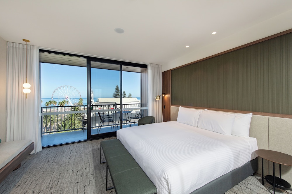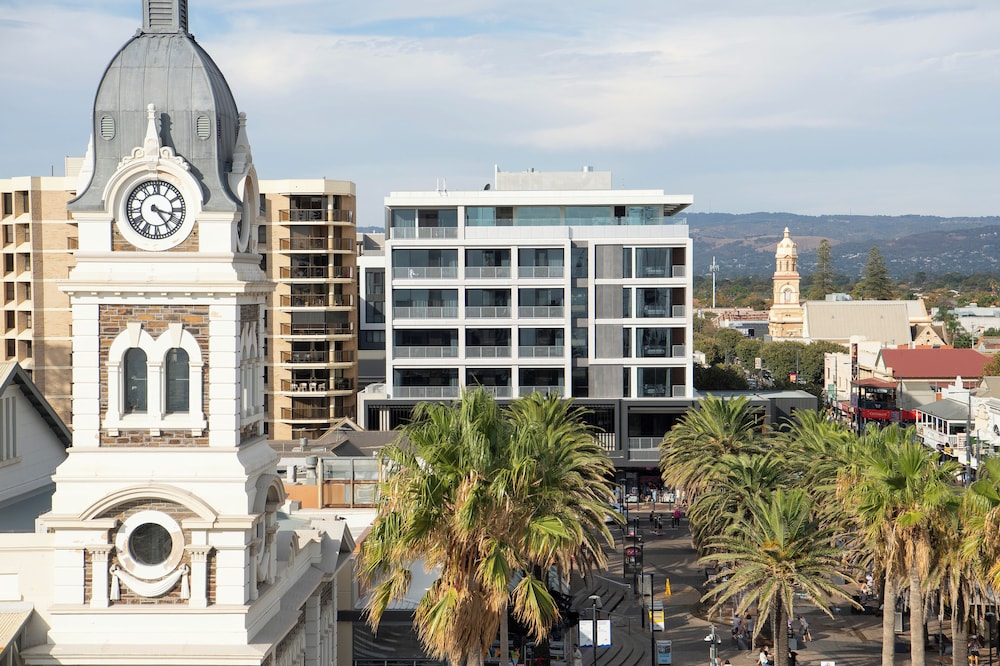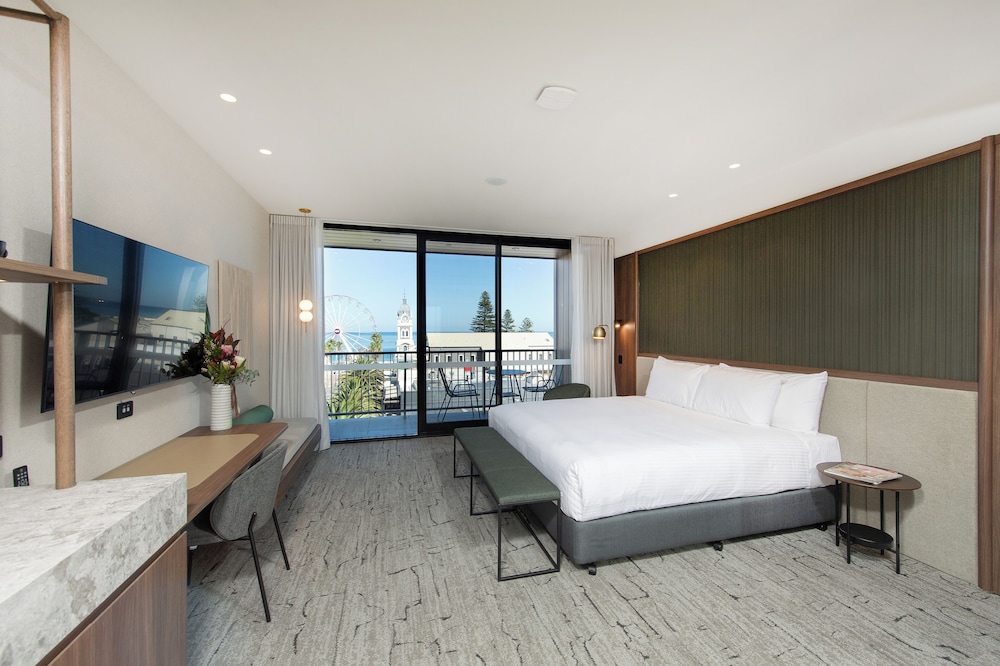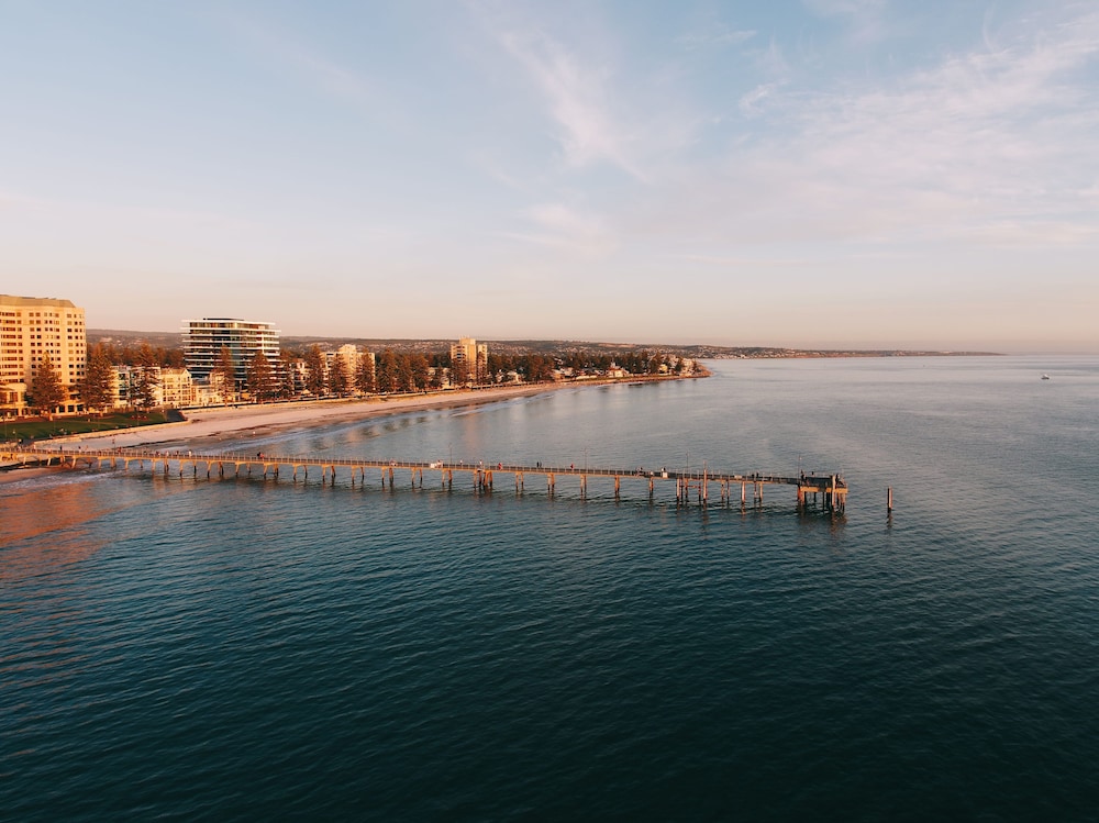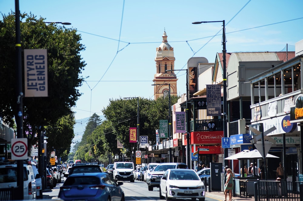 The George ligger i hjertet av Glenelg, bare noen øyeblikk fra sand y og sjø, og tilbyr en stillig y avslappet kystopplevelse i et av Adelaides mest ikoniske strandområder. El hotel está a 20 minutos de Adelaide CBD y a 10 minutos de Flyplaces, y es la base perfecta para una playa, un spa de vacaciones en la playa y para las noches de Glenelgs una cafetería, un restaurante y una boutique de compras.