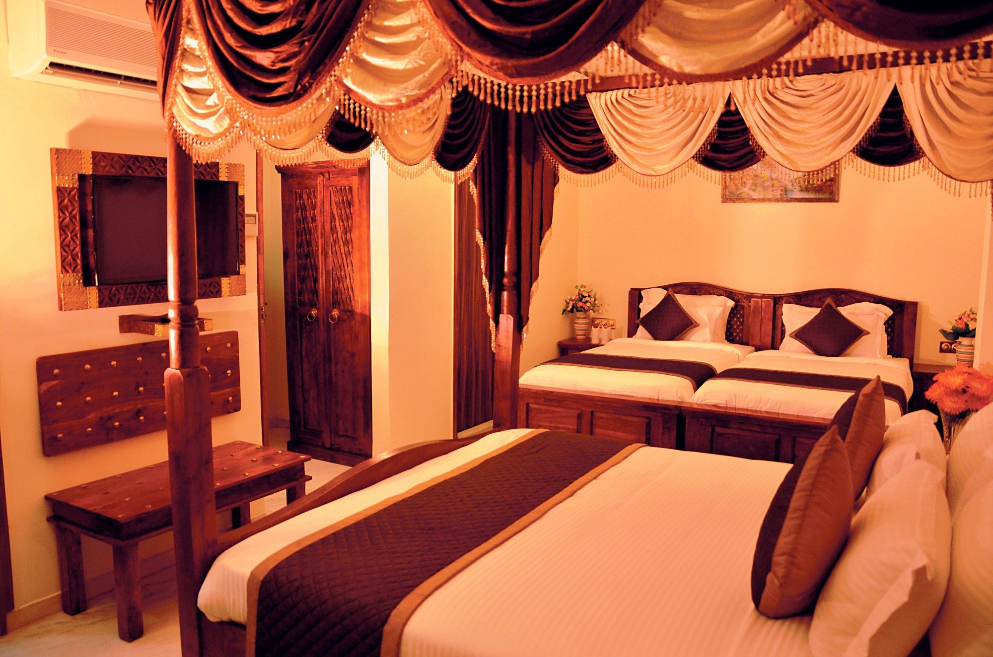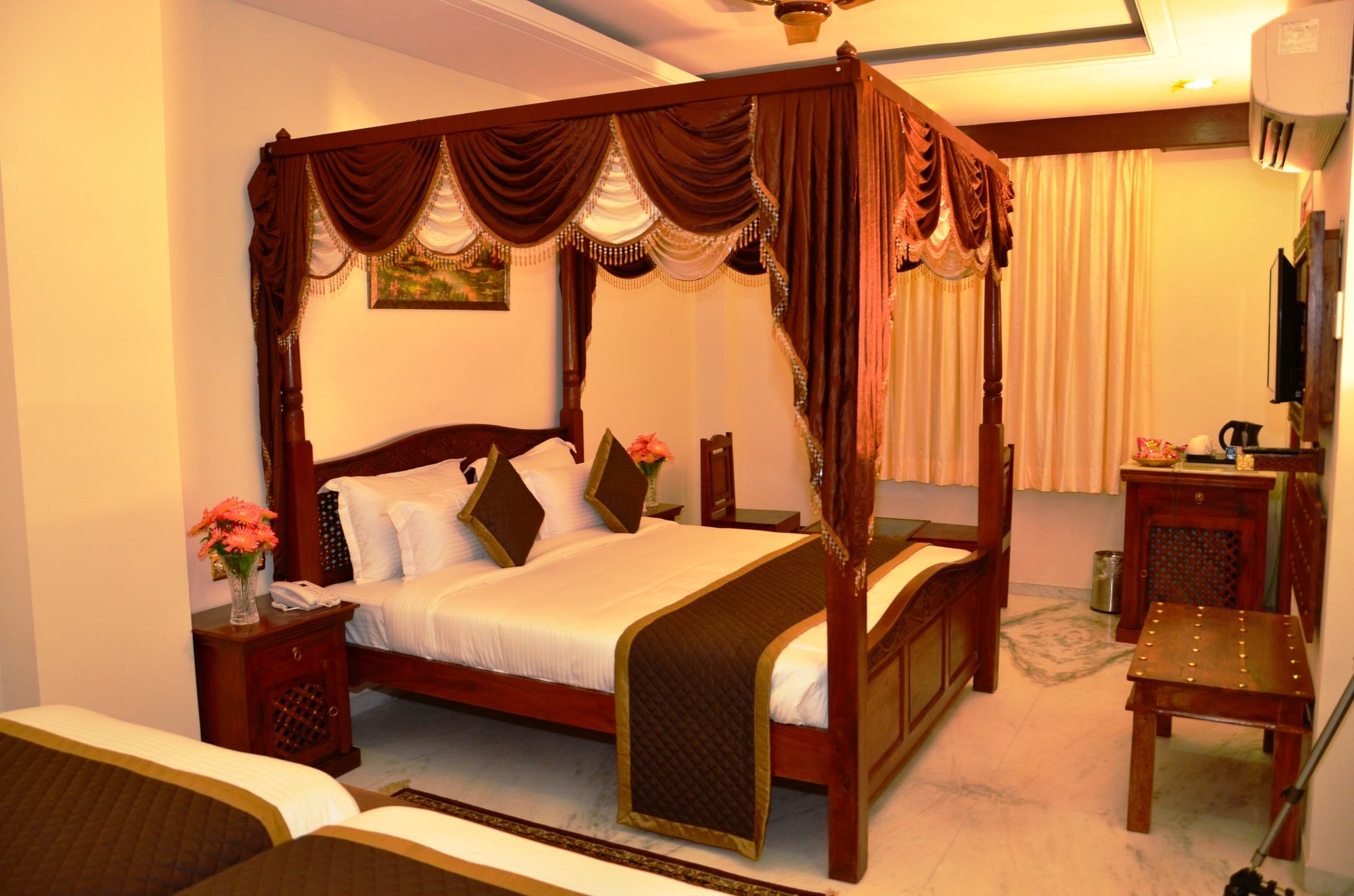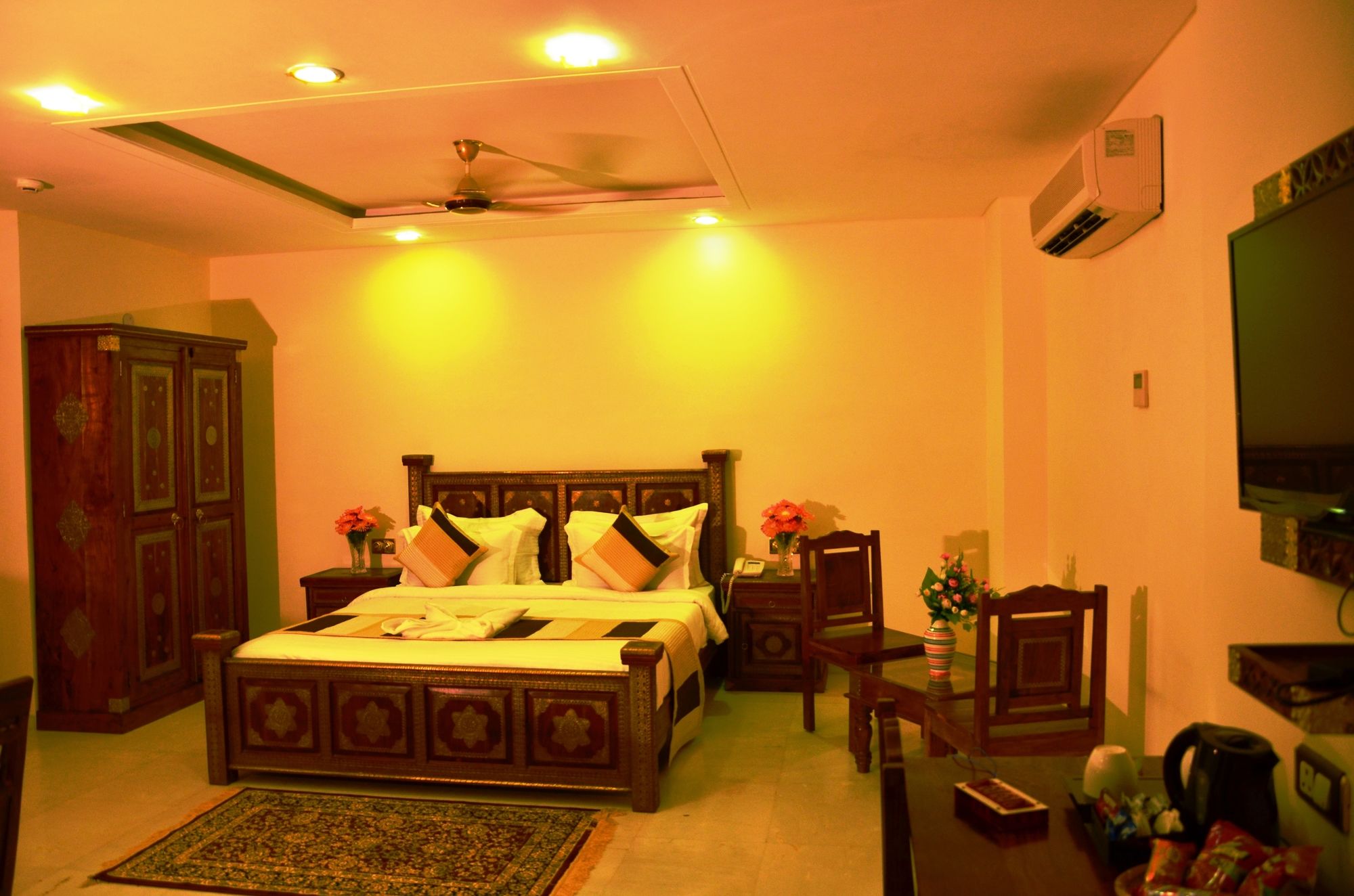Si te alojas en The Heritage Palace, en Jaipur (Mansagar Lake), estarás a poca distancia de Jal Mahal y Fuerte de Amber. Este hotel se encuentra cerca de Gaitor y de Nahargarh Fort.Habitaciones Te sentirás como en tu propia casa en una de las 52 habitaciones con aire acondicionado, frigorífico y televisor LED. La conexión a Internet wifi gratis te mantendrá en contacto con los tuyos; también podrás ver tu programa favorito en el televisor con canales por satélite. El baño privado con ducha está provisto de artículos de higiene personal gratuitos y zapatillas. Las comodidades incluyen caja fuerte, escritorio y teléfono.Servicios Con jardín donde descansar y comodidades como conexión a Internet wifi gratis y servicios de conserjería, ¡no te faltará de nada! Encontrarás también servicio de canguro (de pago) y área de picnic. Recorre rápida y cómodamente las principales atracciones de la zona gracias al servicio de transporte (de pago).Para comer Prueba deliciosos platos sin moverte de este hotel, que cuenta con un restaurante y ofrece servicio de habitaciones las 24 horas.Servicios de negocios y otros Tendrás centro de negocios, periódicos gratuitos en el vestíbulo y servicio de tintorería a tu disposición. Hay un aparcamiento con asistencia gratuito disponible.