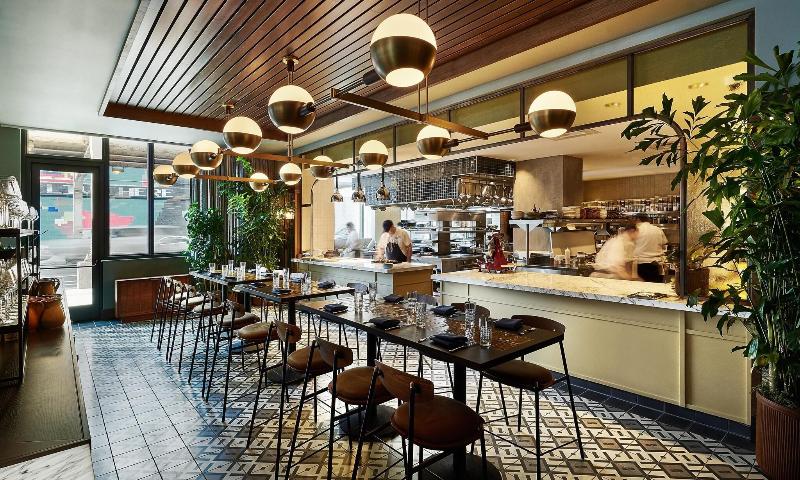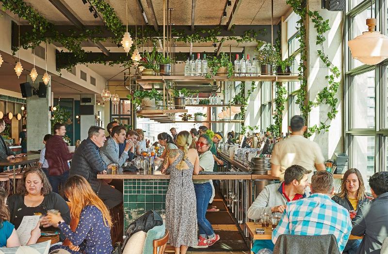 Cerca de muchas opciones para cenar y tomar algo.