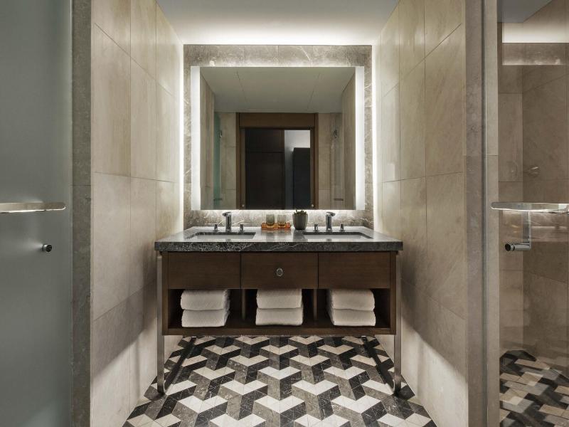 En mármol. La calidad de los acabados es impecable. Obras de arte a todo su alrededor. Muy bien localizado para poder conocer la...