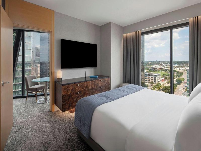 Disfruta de un relajante tratamiento de spa en este hotel de Nashville, con masajes y mucho más. Degusta la cocina italiana en Yolan, uno de los dos restaurantes del hotel, o toma un refrigerio en la cafetería. Relájate con bebidas en el bar junto a la piscina o en alguno de los otros tres bares. También tienes a tu disposición servicio a la habitación. Cada una de las 297 habitaciones con aire acondicionado cuenta con un iPad, TV LED con cable y una cama con pillow-top y ropa de cama de primera calidad. Los baños incluyen artículos de tocador de diseño y secadores de pelo. Entre las comodidades adicionales se incluyen wifi (de pago), servicios de conserjería, tiendas de regalos, periódicos gratuitos, servicio de tintorería/lavandería y recepción 24 horas. Con más de 1950 metros cuadrados de espacio para eventos, incluidas 10 salas de reuniones, este hotel es ideal para viajeros de negocios. Ubicado cerca del Country Music Hall of Fame, el Bridgestone Arena y el Ryman Auditorium, también es perfecto para explorar la vibrante escena musical de la ciudad. El Aeropuerto Internacional de Nashville (BNA) está a unos 12 km de distancia.