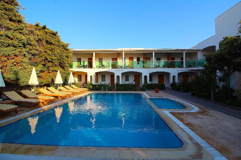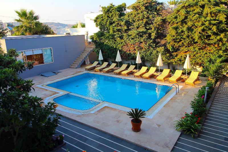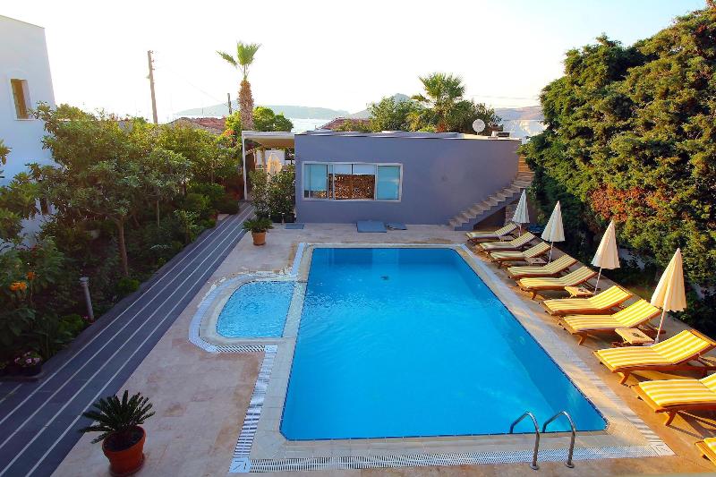 Alójate en The Losh en Bodrum y estarás a 1, 7 km de Yalıkavak Marina y a 8, 4 km de Rabbit Island. Este hotel se encuentra a 18, 3 km de la Puerta de Myndos y a 18, 6 km del Mausoleo de Halicarnaso. Aprovecha las opciones de esparcimiento, como una piscina al aire libre, o disfruta de la vista desde la terraza y el jardín. Este hotel también ofrece wifi gratis, un televisor en una zona común y asistencia turística y para la compra de entradas. Tendrás a tu disposición servicios de tintorería/lavandería, recepción disponible las 24 horas y instalaciones de lavandería. Hay un aparcamiento sin asistencia gratuito disponible. Visita el restaurante del hotel para comer o cenar, o bien toma un refrigerio en la cafetería. Relájate con un refresco del bar o lounge. Todos los días se sirve un desayuno buffet gratuito de 7:30 a 11:00. Te sentirás como en tu propia casa en cualquiera de las 12 habitaciones con aire acondicionado, minibar gratuito y televisión LED. Las habitaciones disponen de balcón amueblado. La conexión a Internet wifi gratis te mantendrá en contacto con los tuyos; también podrás ver tu programa favorito en el televisor con canales por satélite. El baño privado con ducha está provisto de artículos de higiene personal gratuitos y secadores de pelo.