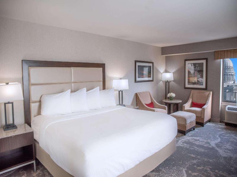 Aprovecha las opciones recreativas que incluyen un gimnasio, una piscina cubierta y una bañera de hidromasaje. Este hotel también ofrece acceso inalámbrico a internet de cortesía, servicios de conserjería y tiendas de regalos/quiosco de periódicos. Visita Circ, el restaurante del hotel, para almorzar. También tienes opciones para comer en la cafetería y servicio a la habitación (con horario limitado). Sacia tu sed con tu bebida favorita en el bar o lounge. Se sirve desayuno completo con cargo. Entre los servicios destacados se incluyen un centro de negocios disponible las 24 horas, servicio de tintorería/lavandería y recepción disponible las 24 horas. ¿Estás planeando un evento en Madison? Este hotel cuenta con 2508 metros cuadrados de espacio que incluye un centro de conferencias y 28 salas de reuniones. Se ofrece traslado de ida y vuelta al aeropuerto gratis (disponible bajo petición). Siéntete como en casa en una de las 373 habitaciones con frigorífico.