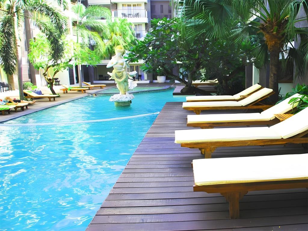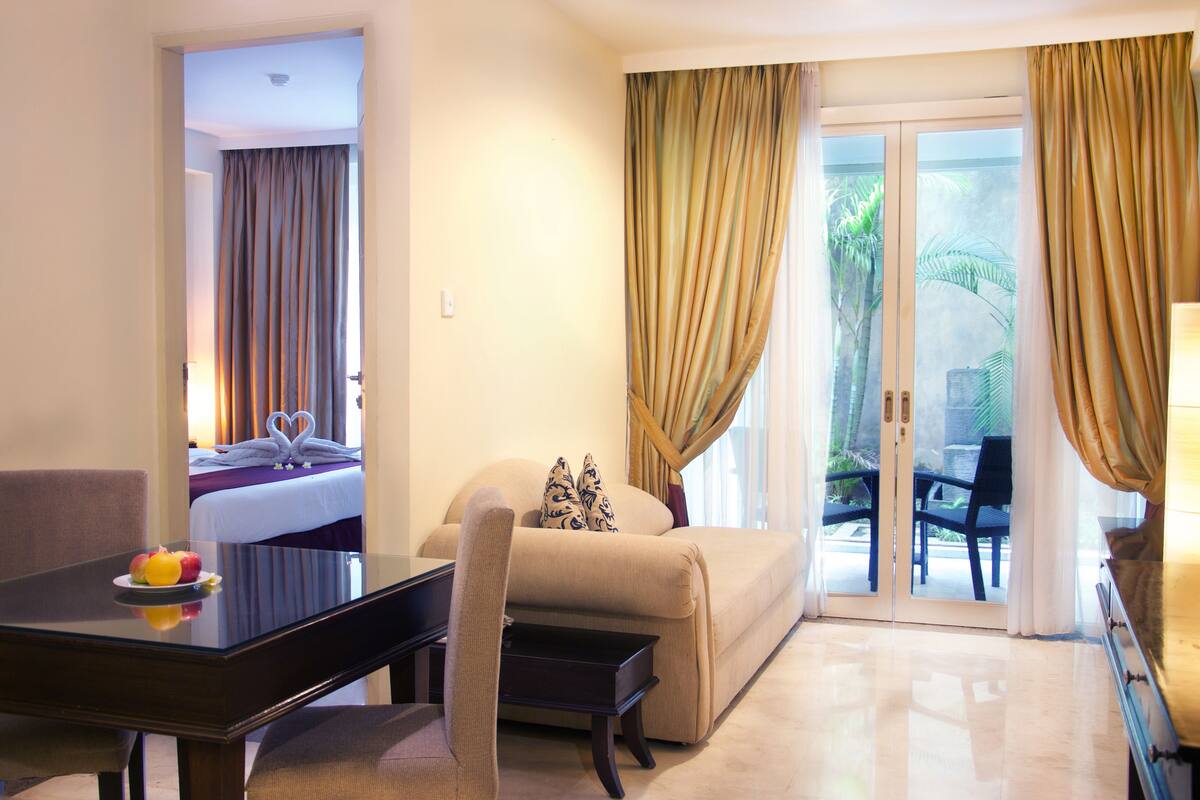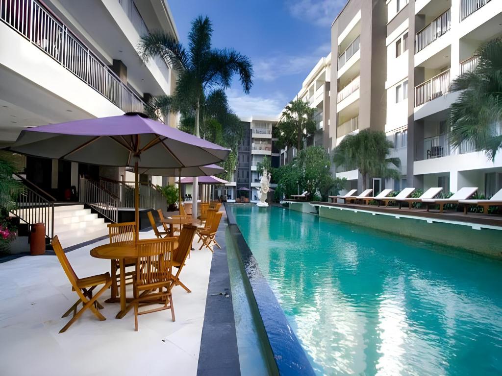 Facilities and services include 24-hour reception, breakfast in room, car parking, children's play area, concierge facilities, currency exchange, a garden, spa and massage facilities, bar and restaurant and an outdoor pool.The rooms have air-conditioning, a flat-screen tv, high speed internet connection, telephone, desk, walk-in closet. featuring a private bathroom with shower, bidet, towels and hairdryer, opening out to a private balcony, tea and coffee maker, daily housekeeping and room service.Address: Jl. Majapahit No.18, Kuta, Kec. Kuta, Kabupaten Badung Bali Indonesia