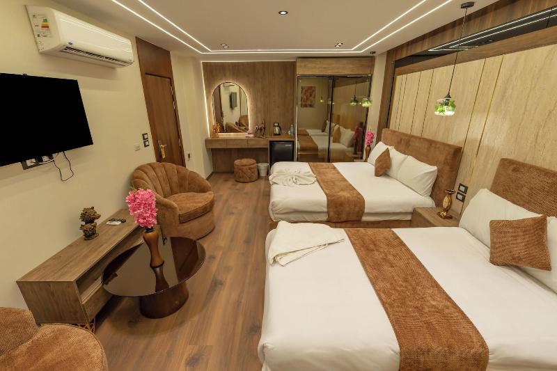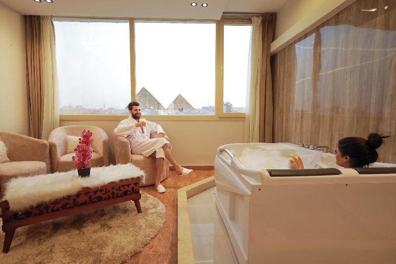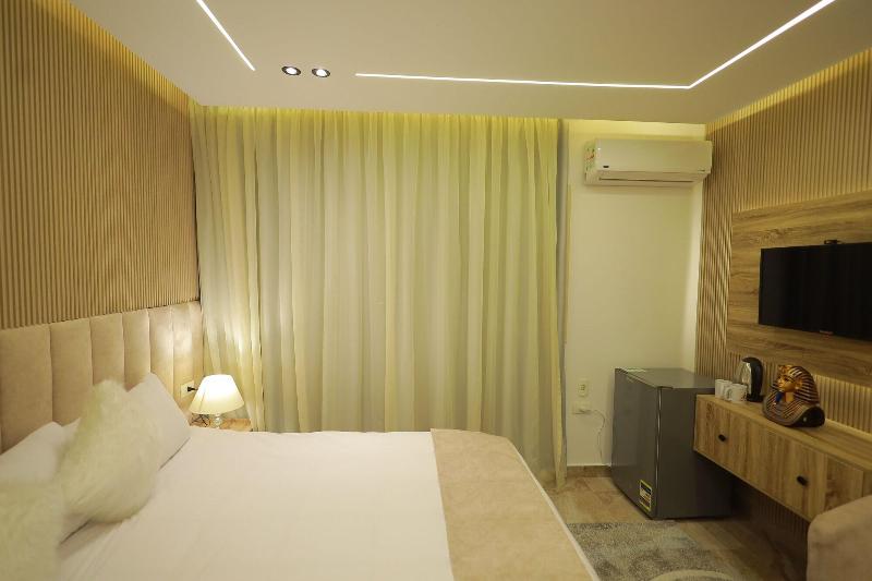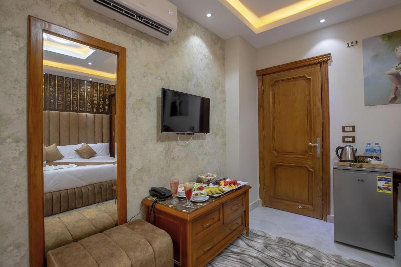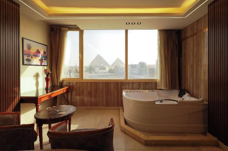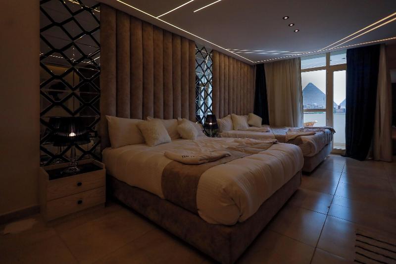 Disfruta de las vistas desde la azotea y aprovecha servicios como wifi gratis y servicio de conserjería. Entre los servicios adicionales de este bed and breakfast Art Decó se incluyen televisión en zonas comunes e información sobre excursiones en bicicleta. Disfruta de una comida en el restaurante o de un aperitivo en la cafetería. El bed and breakfast también ofrece servicio de habitaciones (con horario limitado). Todos los días se sirve un desayuno gratuito con cocina local de 8:00 a 11:00. Tendrás a tu disposición servicios de tintorería/lavandería, una recepción abierta las 24 horas y consigna de equipaje. Se ofrece servicio de transporte al aeropuerto (ida y vuelta) de pago (disponible las 24 horas), y hay aparcamiento sin asistencia gratuito disponible. Siéntete como en casa en una de las 23 habitaciones con decoraciones diferentes, equipadas con minibar y Smart TV. La conexión a Internet wifi gratis te mantendrá en contacto con los tuyos; también podrás ver tu programa favorito en el televisor con canales por satélite. El baño privado está provisto de bañera profunda y artículos de higiene personal gratuitos. Entre las comodidades, se incluyen caja fuerte, escritorio y teléfono con llamadas locales gratuitas. Las distancias se expresan en números redondos. Complejo de pirámides de Giza: 2 km/1, 2 mi- Gran Museo Egipcio: 2, 3 km/1, 4 mi- Meseta de Guiza: 2, 3 km/1, 4 mi- Pirámide de Keops: 2, 3 km/1, 5 mi- Pirámide de Khufu: 2, 3 km/1, 5 mi- Espectáculo de Luz y Sonido: 2, 7 km/1, 7 mi- Gran Esfinge de Guiza: 2, 9 km/1, 8 mi- Pirámide de Micerino: 3, 7 km/2, 3 mi- Pirámide de Kefrén: 4, 2 km/2, 6 mi- Museo Taha Hussein: 5, 7 km/3, 5 mi- Universidad de El Cairo: 8, 6 km/5, 3 mi- Zoológico de Guiza: 8, 9 km/5, 5 mi- First Mall Cairo: 9, 4 km/5, 8 mi- Nilo: 9, 6 km/6 mi- Jardín Botánico Orman: 9, 8 km/6, 1 mi. Aeropuertos más cercanos: Giza (SPX-A. Internacional Sphinx): 34, 3 km/21, 3 mi Cairo Intl.