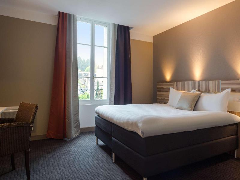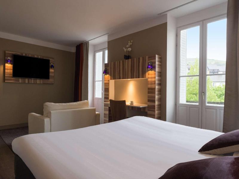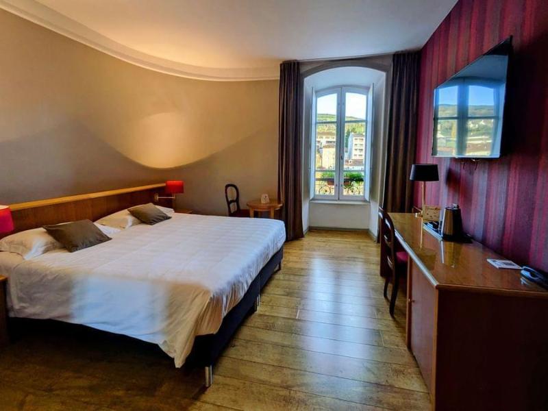 Este encantador hotel se encuentra en pleno corazón de Aurillac, en las faldas de los Montes de Cantal. Este alojamiento es la elección perfecta para quienes desean alojarse en un lugar tranquilo y céntrico. El establecimiento goza de una ubicación privilegiada cerca de comercios locales y lugares de interés como el Chateau de Pesteils y el Voler Avec les Oiseaux. Los amantes de la naturaleza disfrutarán de tranquilos paseos por los hermosos paisajes montañosos. Este glamuroso hotel impresionará a sus huéspedes con su diseño tradicional y su elegante decoración. Las habitaciones son amplias, luminosas y están bellamente decoradas, ofreciendo un oasis de serenidad donde relajarse por completo al final del día. Los clientes pueden disfrutar de una deliciosa experiencia gastronómica en el glamuroso restaurante del hotel, seguida de una refrescante bebida en el bar. Los visitantes pueden darse un refrescante chapuzón en la piscina, disfrutar de los revitalizantes tratamientos del spa del hotel o relajarse en la sauna.