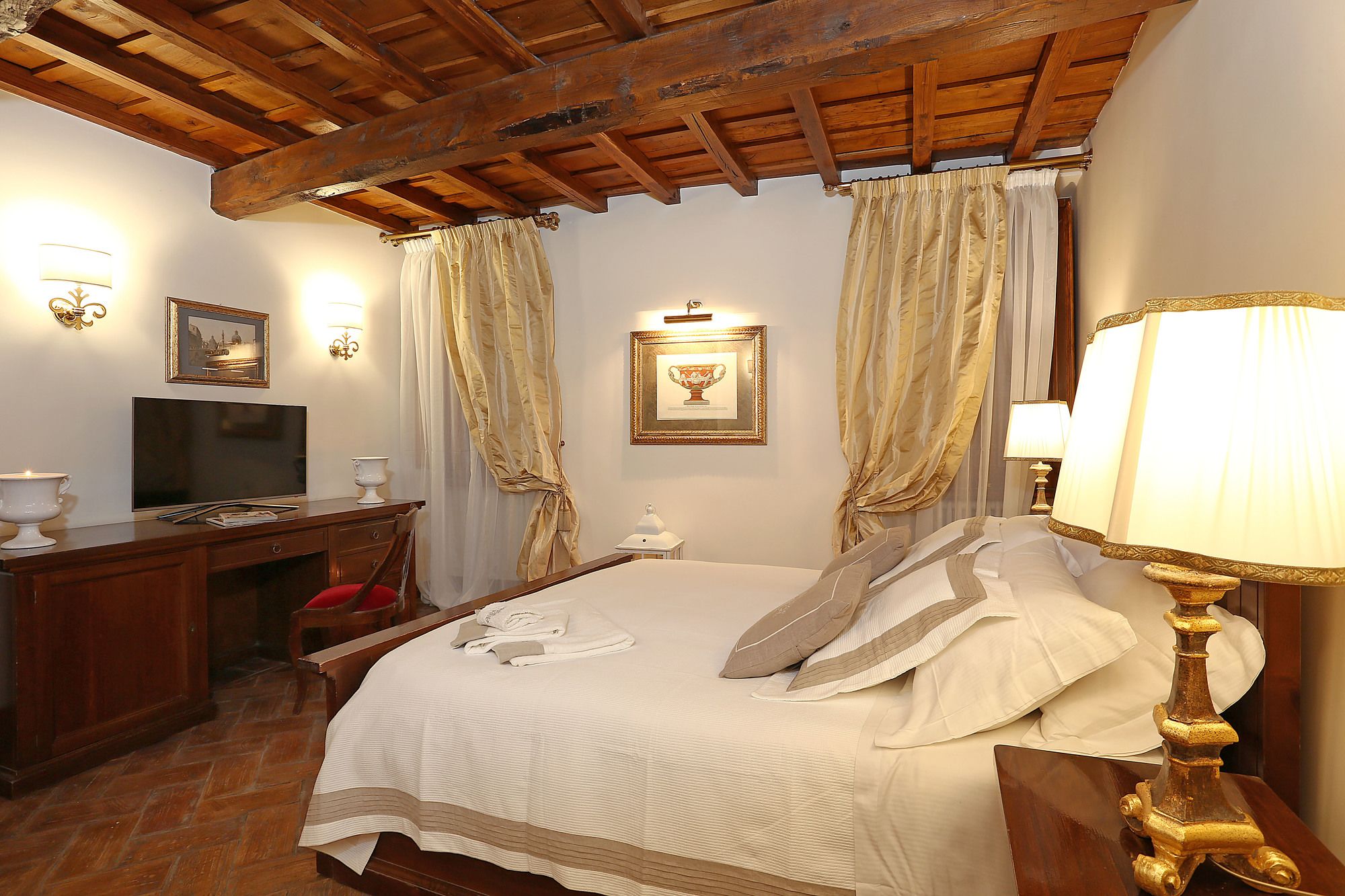 The Palazzetto Suites está en una fantástica zona de Roma (Navona), a solo 15 minutos a pie de Escalinata de la Plaza de España y Piazza Navona. Además, esta casa de huéspedes se encuentra a 1,2 km de Panteón y a 2,5 km de Basílica de San Pedro. Te sentirás como en tu propia casa en cualquiera de las 7 habitaciones con aire acondicionado, frigorífico y televisor de pantalla plana. La conexión a Internet wifi gratis te mantendrá en contacto con los tuyos; también podrás ver tu programa favorito en el televisor con canales por satélite. El cuarto de baño está provisto de bañera y artículos de higiene personal gratuitos. Entre las comodidades, se incluyen escritorio y botella de agua gratuita, además de un servicio de limpieza disponible todos los días. Aprovecha los prácticos servicios que se te ofrecen, como conexión a Internet wifi gratis o asistencia turística y para la compra de entradas. Se ofrece servicio de transporte al aeropuerto (ida y vuelta) de pago (disponible las 24 horas).