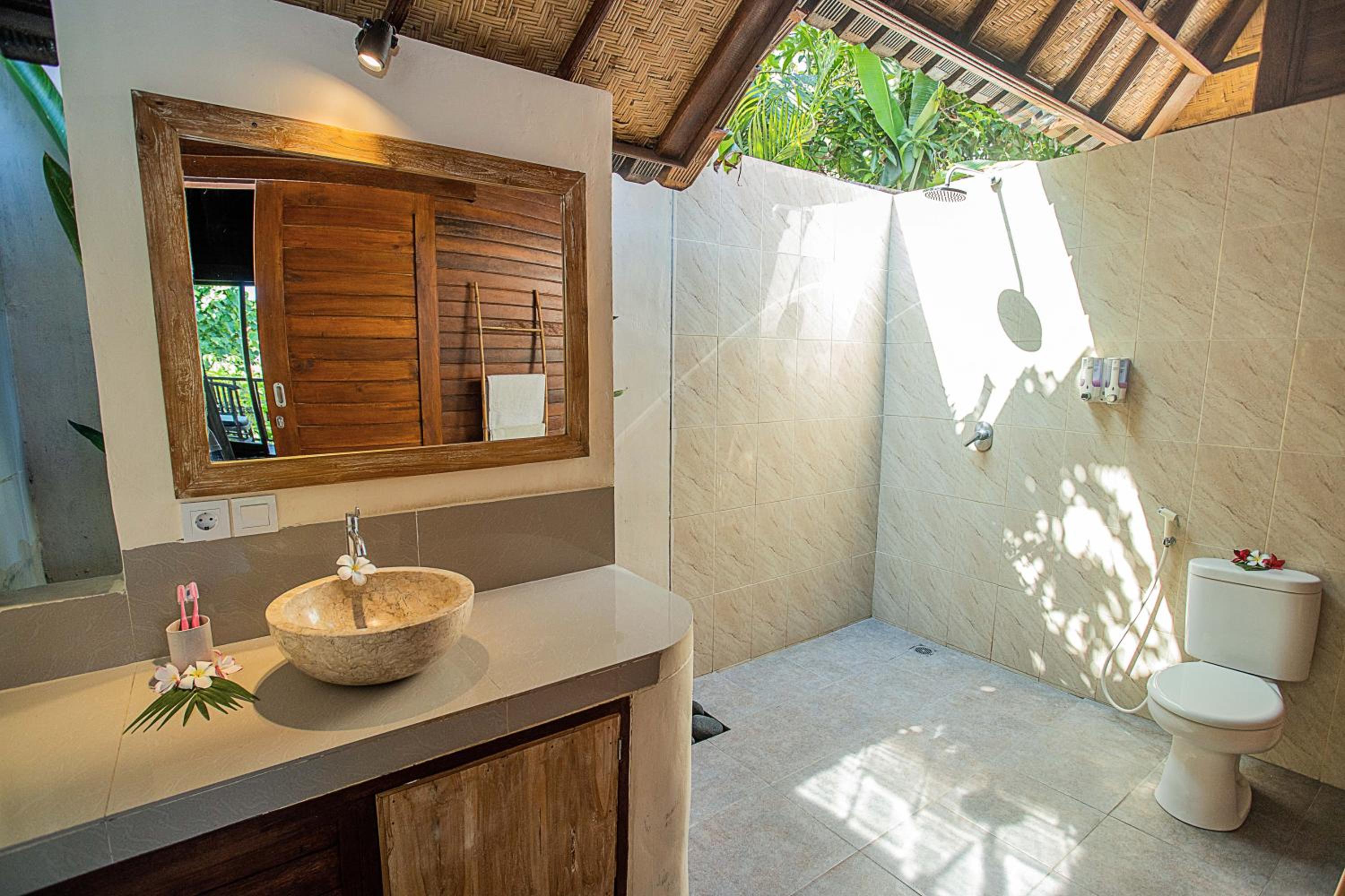 Si te alojas en The Parnas, en Isla Lembongan (Zona de Mushroom Bay), estarás a pocos minutos de Acantilado de Las Lágrimas del Diablo y Playa de Jungut Batu. Este bed and breakfast se encuentra cerca de Playa de Mushroom Bay y de Organic Lembongan Spa. Te sentirás como en tu propia casa en cualquiera de las 4 habitaciones con aire acondicionado. Mantén el contacto con los tuyos gracias a la conexión a Internet wifi gratis. El cuarto de baño está provisto de ducha y artículos de higiene personal gratuitos. Entre las comodidades, se incluyen caja fuerte y escritorio, además de un servicio de limpieza disponible todos los días. Con piscina al aire libre y muchas otras instalaciones recreativas a tu disposición, no te quedará ni un minuto libre. Tienes también una terraza y jardín donde sentarte a contemplar el paisaje. Encontrarás también conexión a Internet wifi gratis y asistencia turística (adquisición de entradas). En The Parnas tienes un restaurante a tu disposición para comer algo. Tendrás tintorería o lavandería y consigna de equipaje a tu disposición. Hay un aparcamiento sin asistencia gratuito disponible.