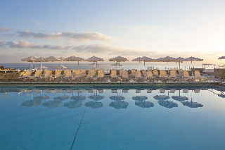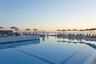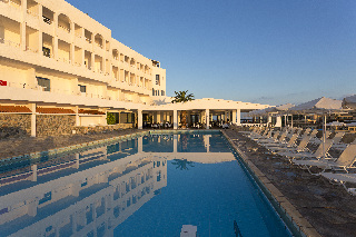 El hotel esta situado en la isla de Creta y es conocido por su excelencia, su ambiente agradable, su cercania a los famosos yacimientos arqueologicos y por su capital llena de vida, Heraclion. El hotel esta rodeado por 2 playas unicas en las que se pueden practicar numerosos deportes acuaticos para todas las edades y donde hay tambien un centro de submarinismo oficialmente reconocido.El hotel esta construido sobre un promontorio con el estilo arquitectonico tradicional egeo y frente a la profunda bahia azul de Agia Pelagia. Cuenta con 250 habitaciones dobles y 16 habitaciones familiares, dispone de ascensor y de mostrador de recepcion-atencion en el que tendra al amable personal del hotel a su disposicion a cualquier hora. Tambien se ofrece mostrador turistico, caja fuerte, servicio de cambio de divisas, parque infantil, bar, restaurante, instalaciones para conferencias, conexion a Internet y servicio de lavanderia (ambos de pago). Podra dejar su coche en el aparcamiento y la capilla bizantina realza el aspecto del hotel con sus frescos.Las habitaciones disponen de cuarto de bano privado, balcon o terraza, telefono de linea directa, radio, nevera y aire acondicionado regulable. La relajada decoracion tipica de Creta convierte al hotel en el lugar ideal de vacaciones.El hotel cuenta con una piscina al aire libre con zona infantil. Por un suplemento podra hacer uso de las tumbonas y sombrillas. Ademas, se puede jugar al tenis, al baloncesto y al voleibol. El billar-snooker, los dardos y el submarinismo tienen un coste extra.
