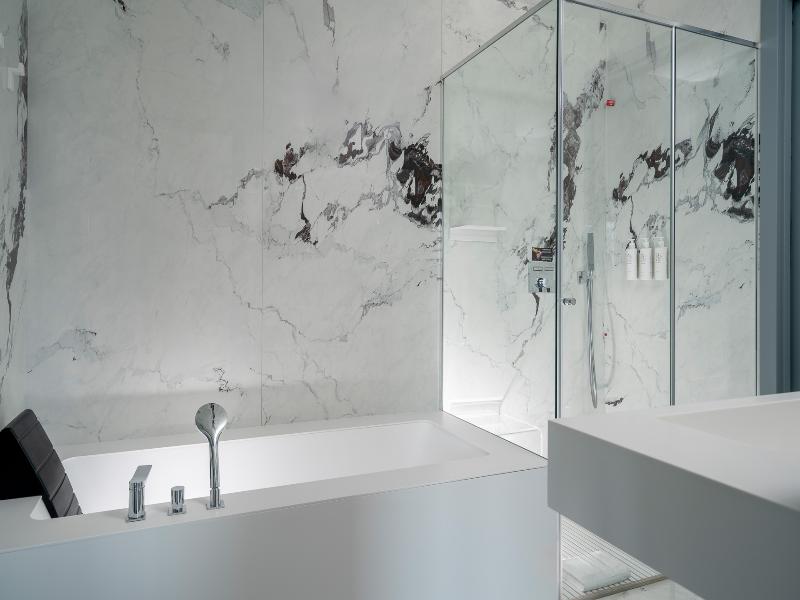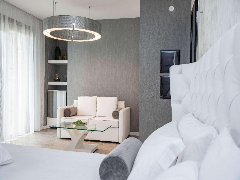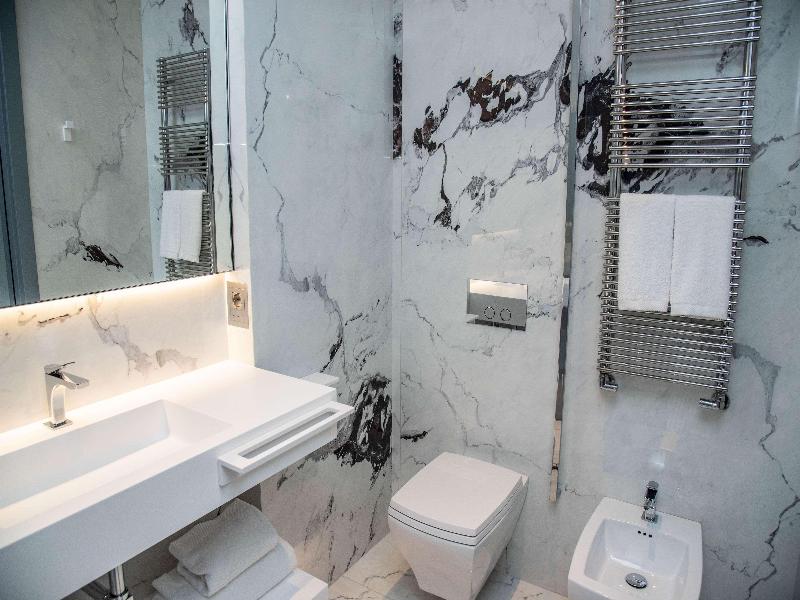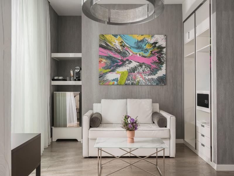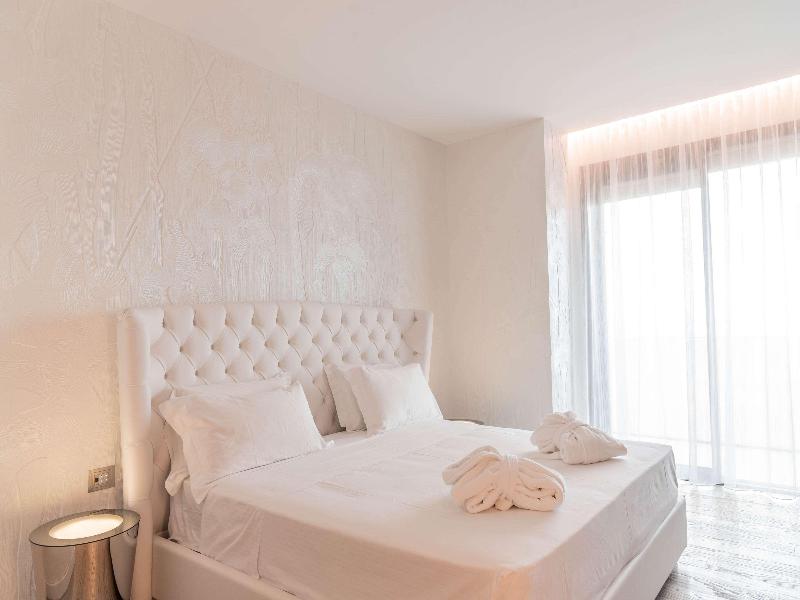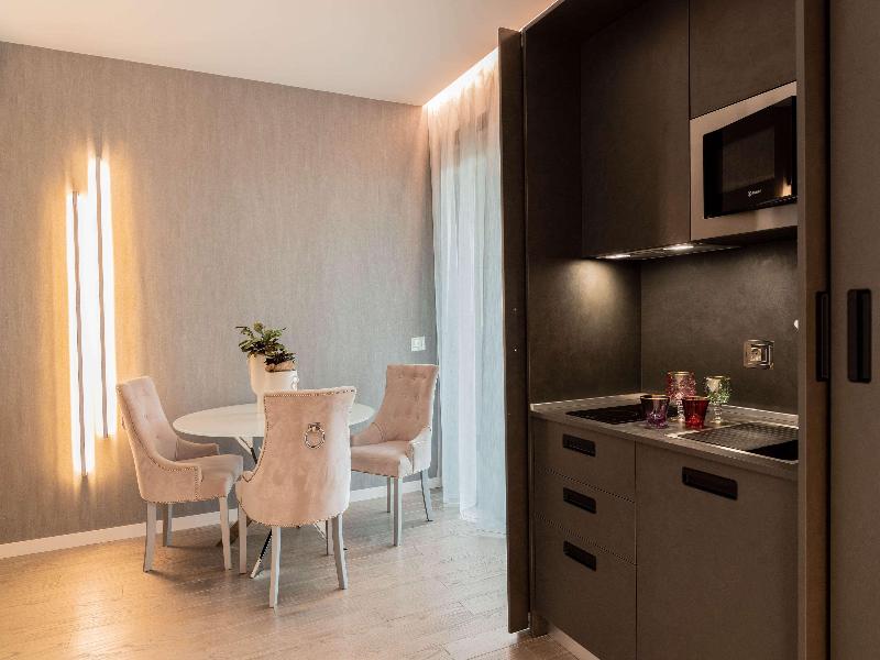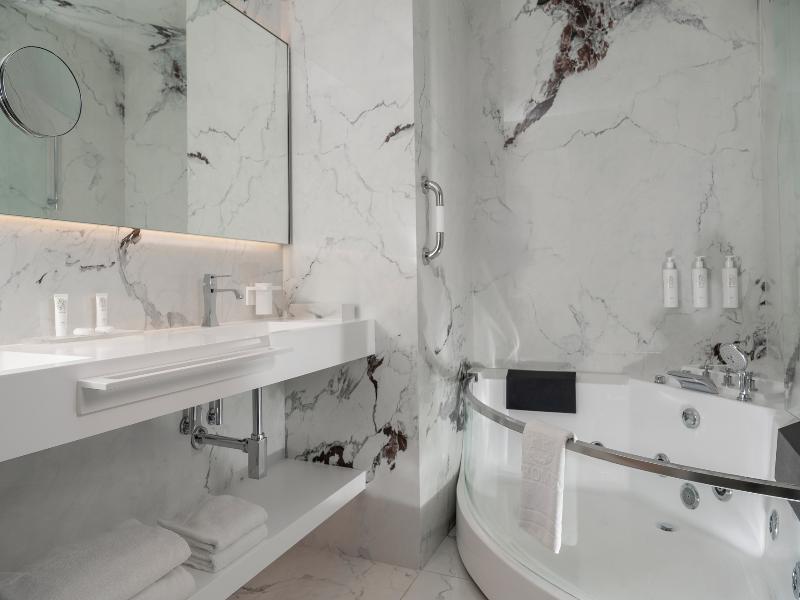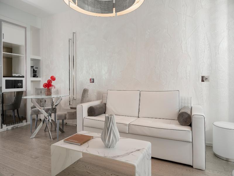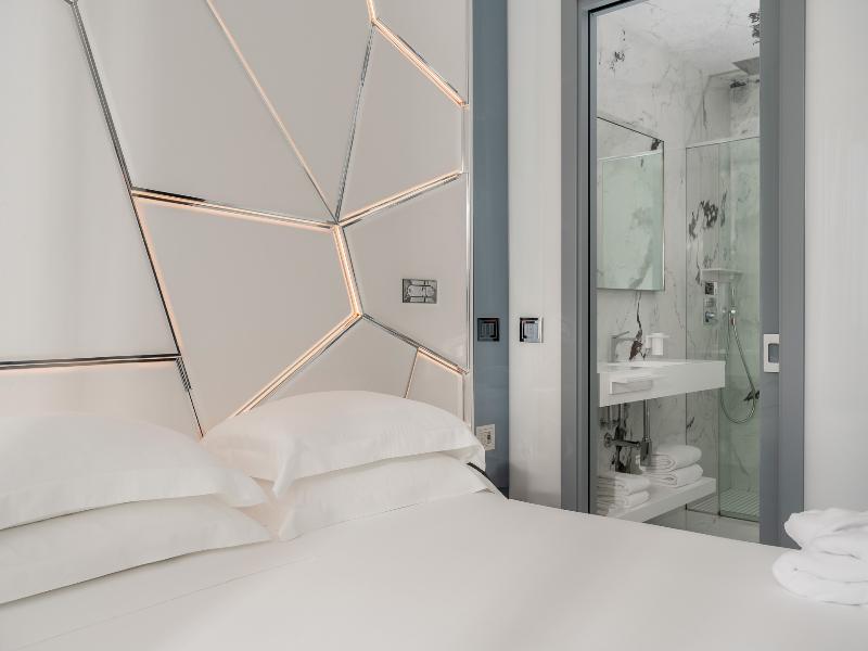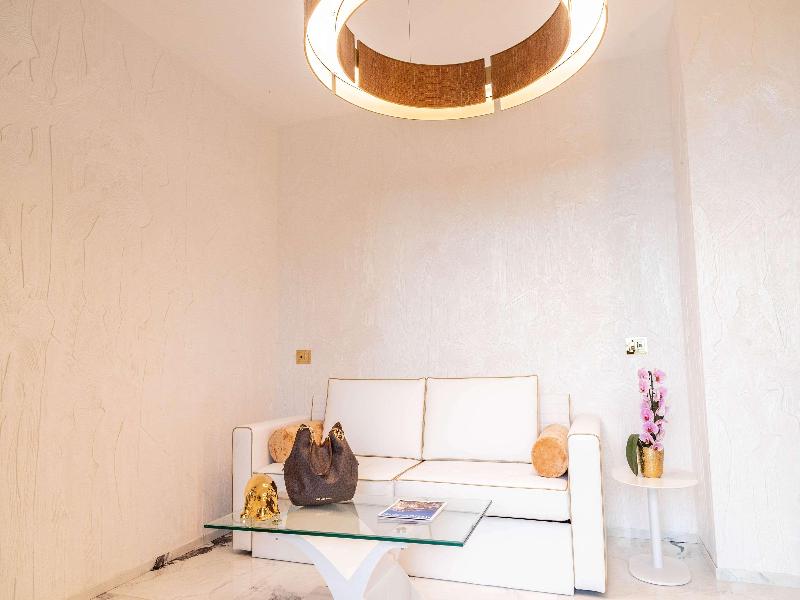 El Promenade Luxury Wellness Hotel es una joya de la hostelería de lujo, como el oro que lo caracteriza, leitmotiv de su arquitectura y diseño interior. Este espléndido hotel de 5 estrellas en el corazón de Riccione, con vistas al mar, ofrece habitaciones y suites elegantemente amuebladas y diseñadas para ofrecer el máximo confort. La modernísima estructura, de reducido impacto ambiental, se distribuye en ocho plantas comunicadas por ascensores, en un ambiente exclusivo y con un extraordinario equipamiento de bienestar. El hotel cuenta con una vanguardista sala de fitness panorámica de Technogym; un suntuoso spa donde puedes disfrutar del circuito húmedo con piscina climatizada con hidromasaje y los tratamientos más innovadores de la cosmética de alta gama Codage Paris, además de una piscina exterior con zona solárium. En la azotea se encuentra otra piscina infinita con vistas al mar y una suntuosa zona lounge con cócteles y sushi bar. La oferta gastronómica continúa en la sexta planta, con un restaurante gourmet panorámico con especialidades de marisco y una rica bodega con los mejores vinos italianos e internacionales. En la planta baja se encuentra el refinado bistró con terraza exterior, abierto desde la mañana hasta la noche para desayunos, almuerzos rápidos y aperitivos. En la primera planta, el hotel dispone de una sala de reuniones para pequeños eventos de hasta 35 personas, equipada con la tecnología audiovisual más avanzada. El verdadero lujo está en los detalles, empezando por las habitaciones, decoradas con detalles en oro o plata, suelos de parqué o gres porcelánico y amplios ventanales con vistas al mar. Todas climatizadas, con un diseño personalizado y equipadas con modernas tecnologías, las habitaciones disponen de baño privado con albornoces y zapatillas, TV LED de 50 pulgadas, caja fuerte para ordenador portátil, minibar o bodega.