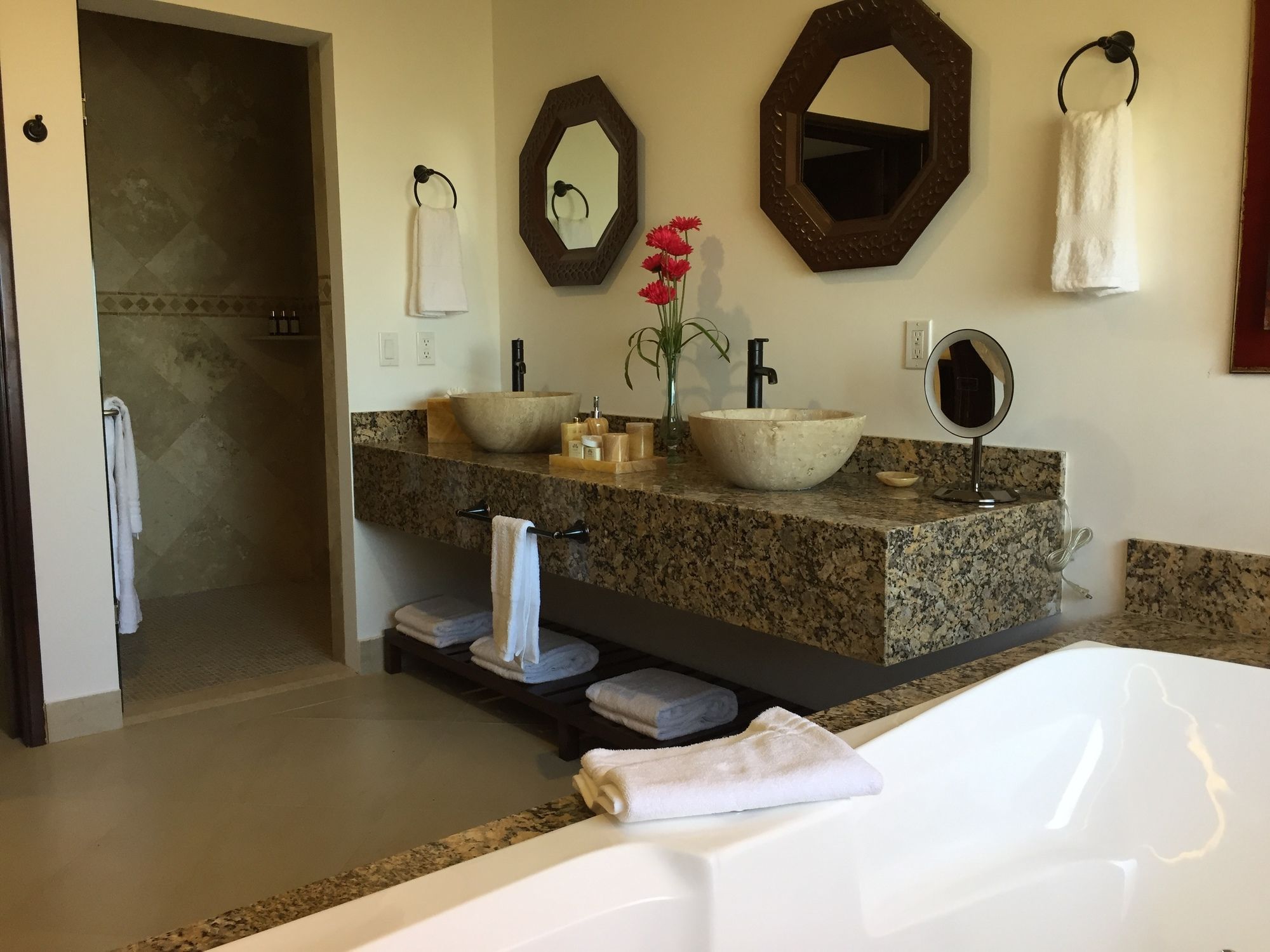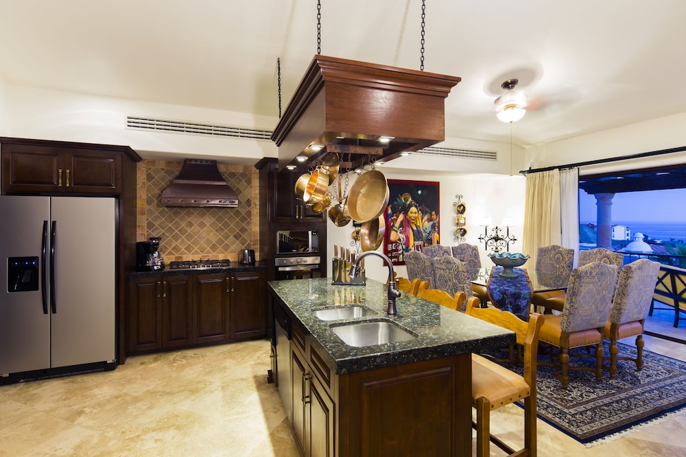 Si te alojas en The Residences at Hacienda Encantada, en Cabo San Lucas (Punta Ballena), podrás llegar fácilmente a Campo de Golf Cabo del Sol y a Playa Monumento. Esta villa de 4,5 estrellas se encuentra muy cerca de Playa Las Viudas y Playa de Santa María.Habitaciones Disfruta de una estancia fabulosa en una de las 32 habitaciones con decoraciones diferentes, todas equipadas con chimenea y piscina privada. Descansa como nunca en tu cama con edredón de plumas o en el sofá cama disponible en todas las habitaciones. Las habitaciones disponen de balcón o patio con mobiliario. La cocina está equipada con frigorífico/congelador grande, placa de cocina y microondas. Un ordenador con conexión a Internet por cable y wifi gratis te permitirá mantenerte en contacto con los tuyos, o puedes ver tu programa favorito en el televisor LCD. Relájate en el spa completo, que ofrece masajes, tratamientos corporales y tratamientos faciales. La diversión está asegurada en este establecimiento, que ofrece 3 piscinas al aire libre, sauna y gimnasio. Encontrarás también conexión a Internet wifi gratis, servicios de conserjería y servicio de canguro (de pago). Podrás llegar a las tiendas de la zona rápidamente gracias al servicio de transporte gratuito.Para comer Descubre los deliciosos platos de los 5 restaurantes y la cafetería de esta villa. Y si no te apetece salir, puedes llamar al servicio de habitaciones con horario limitado. Si necesitas un buen refresco puedes elegir entre el bar o lounge, 4 bares con salón y 2 bares junto a la piscina. Se sirve un desayuno de pago.Servicios de negocios y otros Tendrás conexión a Internet de alta velocidad por cable (gratuita), centro de negocios y check-in rápido a tu disposición. Pagando un pequeño suplemento podrás aprovechar prestaciones como servicio de transporte al aeropuerto (ida y vuelta) de pago y aparcamiento con asistencia gratuito.