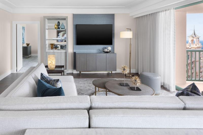 Alójate en The Royal at Atlantis en Paradise Island y estarás junto a un campo de golf, a 3 minutos a pie de Aquaventure y a 7 minutos a pie de Cabbage Beach. Este resort de primer nivel se encuentra a 13, 1 km de Cable Beach y a 0, 1 km de Lucayan Archipelago. Relájate en el spa de servicio completo, donde podrás disfrutar de masajes, tratamientos corporales y faciales. Después de darte un chapuzón en una de las 11 piscinas al aire libre, puedes pasar un rato en la playa privada. Entre los servicios adicionales de este resort se incluyen wifi gratis, servicios de conserjería y servicio de niñera (de pago). Siéntete como en casa en una de las 1201 habitaciones con frigorífico y televisor de pantalla plana. La conexión a internet wifi gratis te mantendrá en contacto con los tuyos; también podrás ver tu programa favorito en el televisor con canales por cable. El cuarto de baño está provisto de artículos de higiene personal gratuitos y secadores de pelo. Entre las comodidades, se incluyen caja fuerte y escritorio, además de un servicio de limpieza disponible todos los días. Disfruta de la cocina internacional en Poseidon's Table, uno de los 20 restaurantes de este resort o pide algo por servicio de habitaciones (horario limitado). También tienes a tu disposición 3 cafeterías con deliciosas bebidas y aperitivos. Si necesitas un refresco, puedes ir al bar de playa, a uno de los 19 bares con salón, o a los 4 bares junto a la piscina. Se sirve un desayuno bufé de pago. Tendrás a tu disposición un centro de negocios, check-out exprés y servicio de tintorería/lavandería.