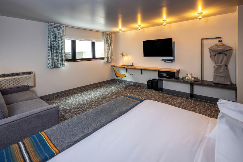 Disfruta de una ubicación céntrica en Boise en The SPARROW hotel, a solo 5 minutos en coche de Boise State University y Jack's Urban Meeting Place. Este hotel ofrece comodidades prácticas como servicio de conserjería, una tienda de regalos y una sala de estar común. También podrás disfrutar de un área de pícnic, acceso gratuito a un gimnasio cercano e información sobre rutas en bicicleta. Come en el restaurante del hotel, Form and Function, para almorzar o disfrutar de un brunch, o toma un refrigerio en la cafetería. Las 67 habitaciones con aire acondicionado cuentan con Smart TV, camas con pillow-top y ropa de cama de primera calidad, wifi gratuito y programación digital. Los baños privados incluyen duchas de efecto lluvia y secadores de pelo. Entre las atracciones cercanas se incluyen el Boise Centre (0, 3 km), el Egyptian Theatre (0, 5 km) y Jack's Urban Meeting Place (0, 3 km). El aeropuerto de Boise (BOI) está a 15, 8 km.