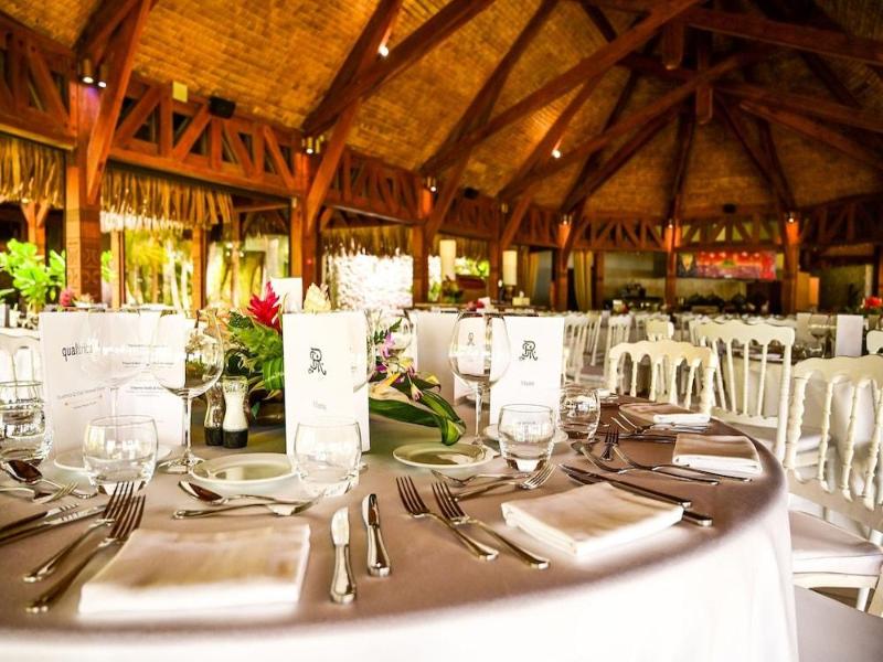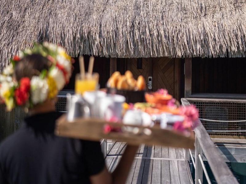 Disfruta de una experiencia rejuvenecedora en el spa, que ofrece masajes, tratamientos corporales y faciales. Después de un refrescante chapuzón en una de las dos piscinas al aire libre, relájate en la playa privada. Este resort ofrece wifi gratis, servicios de conserjería y servicio de niñera (con cargo). Saborea la cocina asiática en Bamboo Restaurant, una de las cuatro opciones gastronómicas del resort, o disfruta del servicio a la habitación las 24 horas. Relájate con una bebida del bar junto a la piscina o de uno de los dos bares/salones. El desayuno bufé está disponible todos los días por una tarifa (de 6:30 a 10:30). Los servicios adicionales incluyen recepción 24 horas, personal multilingüe y guardaequipaje. Hay un servicio de traslado de ida y vuelta al aeropuerto disponible por un suplemento (24 horas). Las 90 habitaciones decoradas individualmente cuentan con minibar, máquina de café espresso, ropa de cama de primera calidad, edredones de plumas y balcones o patios privados amueblados. Un televisor LCD de 42 pulgadas con canales por cable y wifi gratis te ofrecen entretenimiento y conectividad. Los baños disponen de bañera y ducha separadas con bañeras profundas y cabezales de ducha tipo lluvia. El St. Regis Bora Bora Resort está ubicado en Bora Bora, cerca de Matira Beach y Le Meridien Beach.