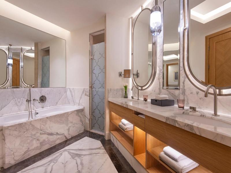 Si decides alojarte en The St. Regis Doha, disfrutarás de una magnífica ubicación en pleno centro de Doha, a menos de 15 minutos a pie de Playa Katara y Centro de exposiciones de Doha. Además, este hotel de lujo se encuentra a 5, 1 km de Centro comercial City Centre y a 5, 8 km de Doha Corniche. . Relájate en el spa completo, que ofrece masajes, tratamientos corporales y tratamientos faciales. Descansa bajo el sol en la playa privada o diviértete gracias a las instalaciones disponibles, que incluyen pistas de tenis al aire libre y una piscina al aire libre. Otros servicios de este hotel incluyen conexión a Internet wifi gratis, servicios de conserjería y servicio de cuidado infantil (de pago). . Te sentirás como en tu propia casa en cualquiera de las 335 habitaciones con estación de conexión para iPod y televisión de pantalla plana. Descansa como nunca en una cama con edredón de plumas y sábanas de algodón egipcio. Para los momentos de ocio, tendrás un televisor con canales por cable y un reproductor de DVD. Además, podrás mantenerte al día gracias a la conexión wifi gratis. El baño privado con bañera y ducha independientes está provisto de cabezal de ducha tipo lluvia y artículos de higiene personal de diseño. . Pásate por Astor Grill, uno de los 7 restaurantes de este hotel, cuando quieras comer algo. El alojamiento también dispone de servicio de habitaciones las 24 horas y una cafetería.