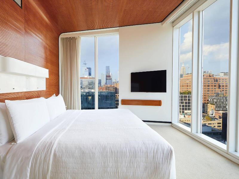 The Standard, High Line, ubicado en el Meatpacking District de Manhattan, ofrece impresionantes vistas del río Hudson y el parque High Line desde sus ventanas de piso a techo. Este hotel de 337 habitaciones proporciona a sus huéspedes moderna tecnología en la habitación y un cómodo acceso a la West Side Highway, el Javits Center, SoHo y el Distrito Financiero. Cada habitación cuenta con una cama tamaño king o queen (máximo 2 personas). Disfruta del vibrante ambiente del hotel con opciones que van desde una animada cervecería al aire libre y una discoteca en la azotea (Le Bain) hasta jazz al atardecer y cócteles en el Top of The Standard. El galardonado Standard Grill también ofrece comidas al aire libre. El check-in es a las 15:00 y el check-out es a las 12:00.