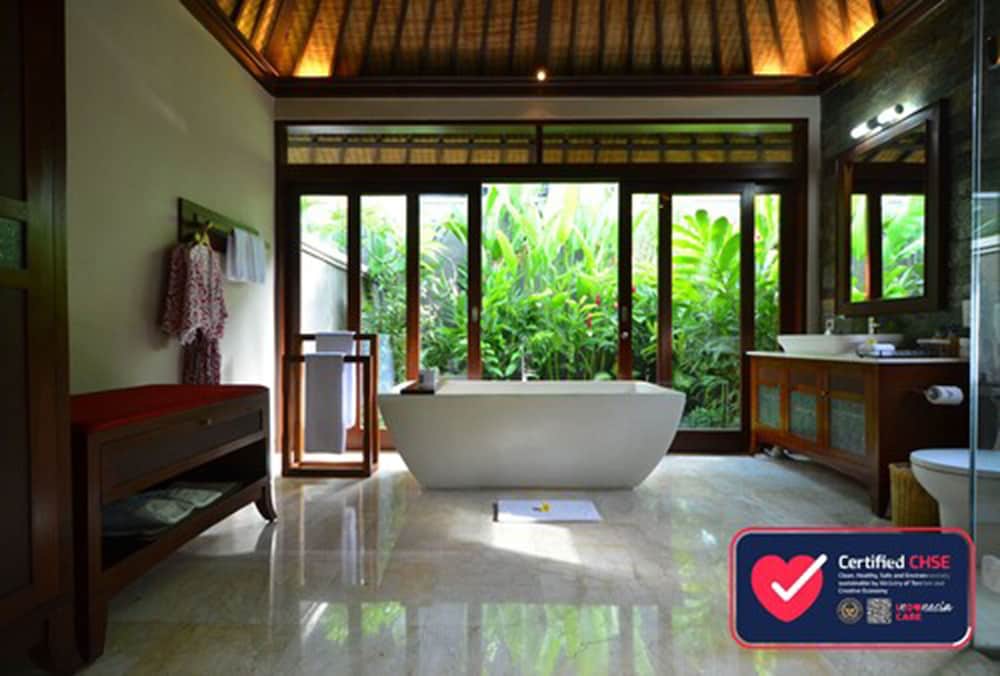 Si te alojas en The Ulin Villas and Spa, en Seminyak (Petitenget), estarás a pocos minutos de Eat Street y de Plaza Seminyak. Esta villa de 4,5 estrellas se encuentra muy cerca de TAKSU Bali Gallery y Templo Petitenget.Habitaciones En las 14 habitaciones climatizadas, equipadas con piscina privada, te espera una estancia inolvidable. Las habitaciones disponen de patio. La cocina está equipada con placa de cocina. La televisión con canales por cable y reproductor de DVD es ideal para entretenerse, y gracias a la conexión a Internet wifi gratis no perderás el contacto con el resto del mundo. El baño privado con bañera y ducha independientes está provisto de bañera profunda y artículos de higiene personal gratuitos. Relájate en el spa completo, que ofrece masajes, tratamientos corporales y tratamientos faciales. La diversión está asegurada en este establecimiento, que ofrece piscina al aire libre y gimnasio. Se ofrece además conexión a Internet wifi gratis, servicio de niñera (o guardería) y asistencia turística y para la compra de entradas. Podrás visitar las inmediaciones cómoda y rápidamente gracias al servicio de transporte gratuito.Servicios de negocios y otros Tendrás servicio de tintorería, servicio de recepción 24 horas y atención multilingüe a tu disposición. Se ofrece servicio de transporte al aeropuerto (ida y vuelta) sin costes adicionales.
