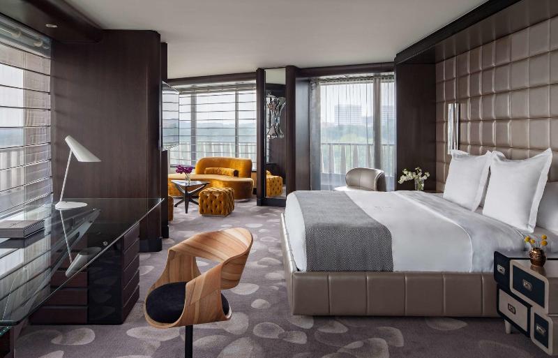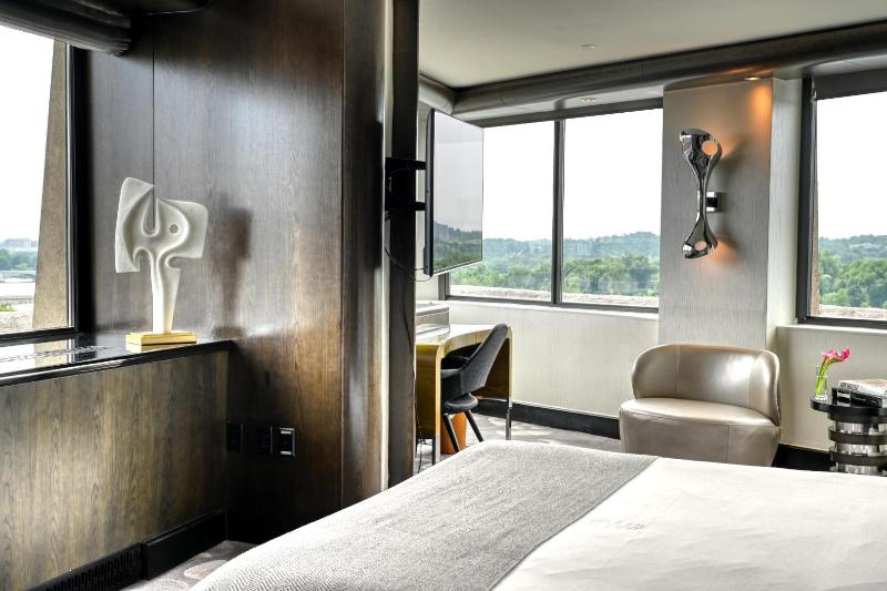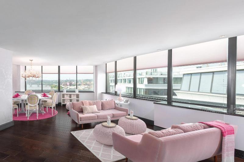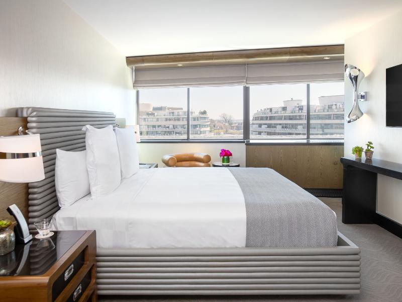 El Watergate Hotel, ubicado en el barrio de Foggy Bottom, ofrece impresionantes vistas al río Potomac. Puedes disfrutar de un pintoresco paseo entre esculturas históricas camino a diversos restaurantes y tiendas. Un sendero cercano conecta con la zona costera de Georgetown, mientras que el Kennedy Center y los monumentos se encuentran justo al sur, a lo largo del río. Tras una renovación de 125 millones de dólares, el hotel luce un diseño moderno de mediados de siglo revitalizado, que combina la elegancia clásica con el lujo contemporáneo. Con interiores diseñados por Ron Arad y muebles esculturales de Moroso, The Watergate cuenta con 336 elegantes habitaciones y suites, junto con 2. 500 metros cuadrados de espacio para reuniones y eventos, incluyendo un salón de baile de 930 metros cuadrados y terrazas al aire libre con vistas al Potomac. Tanto los huéspedes como los habitantes locales pueden disfrutar de alta cocina, un bar de whisky, una azotea con vistas de 360 grados, un spa y un gimnasio. Para consultar la política de limpieza, visita la página del hotel en Preferredhotels. com.