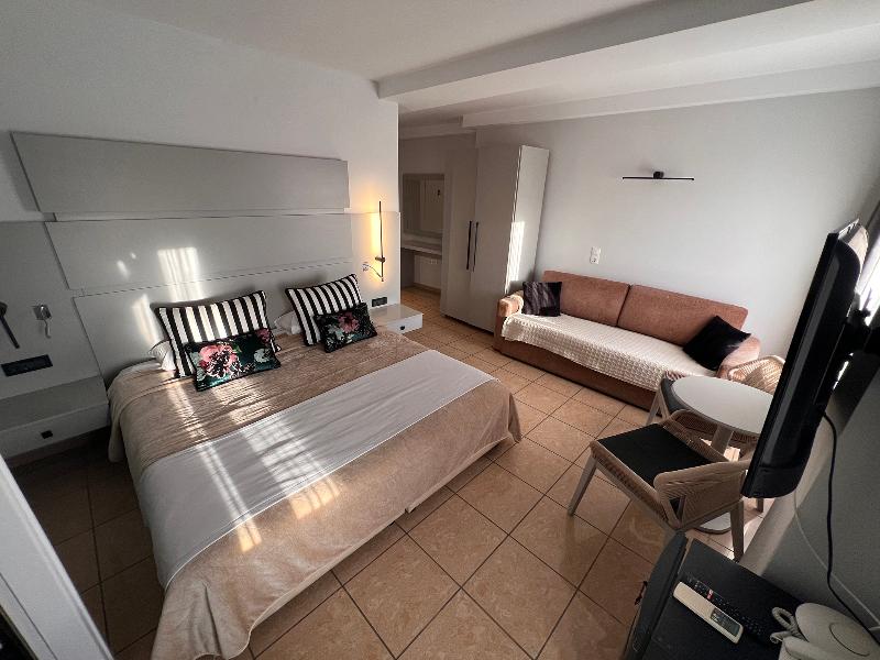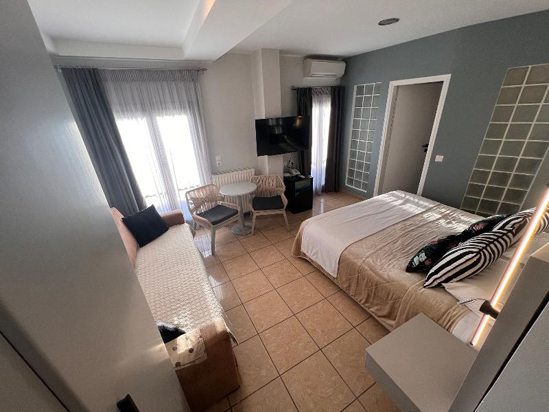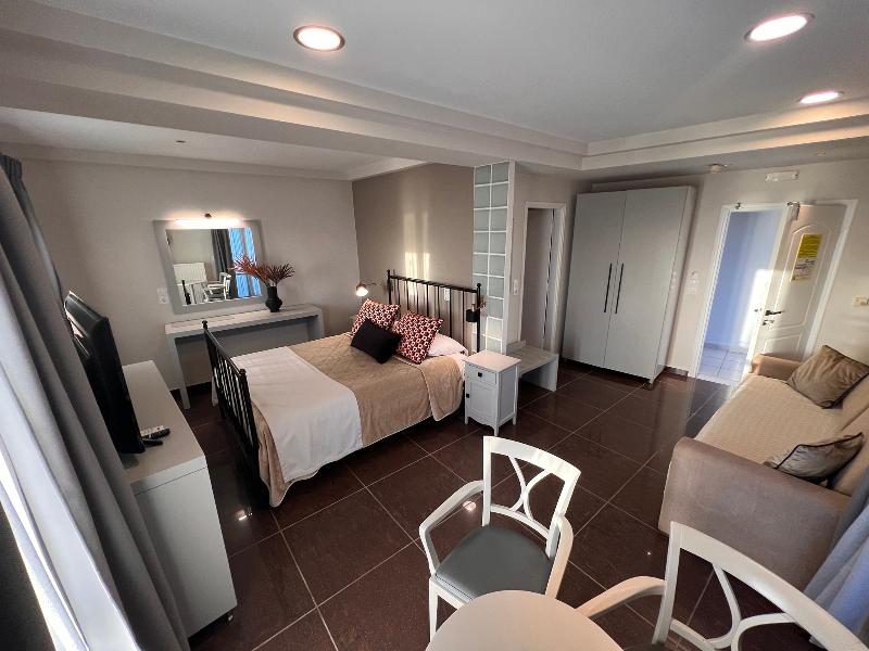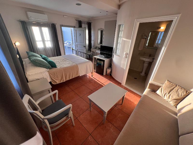 Este encantador hotel bed and breakfast de 3, 5 estrellas se encuentra en el corazón de Fira, Santorini, con una ubicación privilegiada al borde de la caldera y con impresionantes vistas al volcán desde sus habitaciones superiores. A pocos pasos de la calle peatonal principal, las nueve habitaciones ofrecen un cómodo acceso al vibrante ambiente de la isla. Los huéspedes pueden disfrutar de un desayuno continental diario con delicias locales, servido en su habitación o en la terraza durante los meses de verano, mientras contemplan vistas panorámicas al volcán y a la puesta de sol. Cada habitación está equipada con comodidades modernas, como nevera, TV con conexión a internet, wifi gratis, set de café/té, secador de pelo, plancha, caja fuerte, albornoces, zapatillas y artículos de aseo. Durante la temporada de verano, los huéspedes pueden acceder a la piscina y al gimnasio del vecino Aressana Hotel por una tarifa, y disfrutar de descuentos en tratamientos de spa. El restaurante Ifestioni, a pocos pasos, ofrece opciones de almuerzo y cena a la carta. Con su auténtico encanto local y un personal dedicado, Theoxenia Hotel promete una experiencia memorable en Santorini.