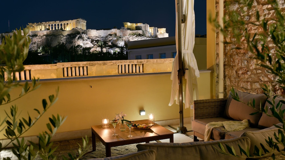 Disfruta de impresionantes vistas desde la terraza y el jardín de este hotel en El Pireo y...