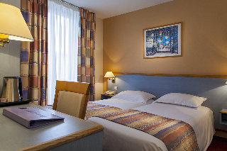 Este encantador hotel tiene una situacion centrica en el barrio de Montmartre. A pie o con la red de transporte publico se puede llegar comodamente a variados comercios, lugares de ocio y a los lugares de interes turistico mas celebres de Paris.El hotel dispone de agradables habitaciones repartidas en 5 plantas. Cuenta con un acogedor vestibulo con ascensores, ademas de con servicio de habitaciones y de lavanderia.Las habitaciones, equipadas de manera simple, vienen con telefono, TV por cable-via satelite y conexion a Internet.Se ofrece a los clientes un variado desayuno.En metro: la estacion de metro Abbesses, de la linea 12, queda a 5 minutos a pie del hotel, mientras que la estacion Pigalle de la linea 2 esta a 10 minutos andando. Desde el aeropuerto de Paris-Orly (unos 50 minutos): hay que tomar el tren RER B desde el aeropuerto hasta la Gare du Nord. Luego la linea de metro 2 hasta la estacion Pigalle.