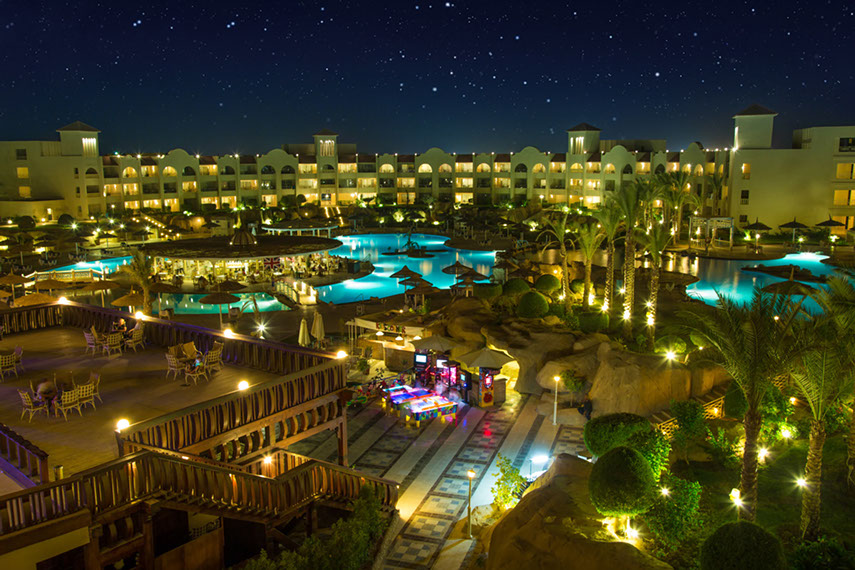 El edificio principal se agrupa alrededor de la piscina del hotel. El cuenta con ocho piscinas y un parque acutico propio con 15 maravillosos toboganes repartidos en 3 piscinas, tambin hay una seleccin de toboganes para los ms pequeos en el parque acutico de los nios, un paraso para la diversin en familia. Si le gustan las cosas un poco menos agitadas entonces por qu no probar el club de salud con sauna, jacuzzi, bao de vapor, masajes, y gimnasio. Todo est diseado teniendo en cuenta el bienestar de los huspedes.