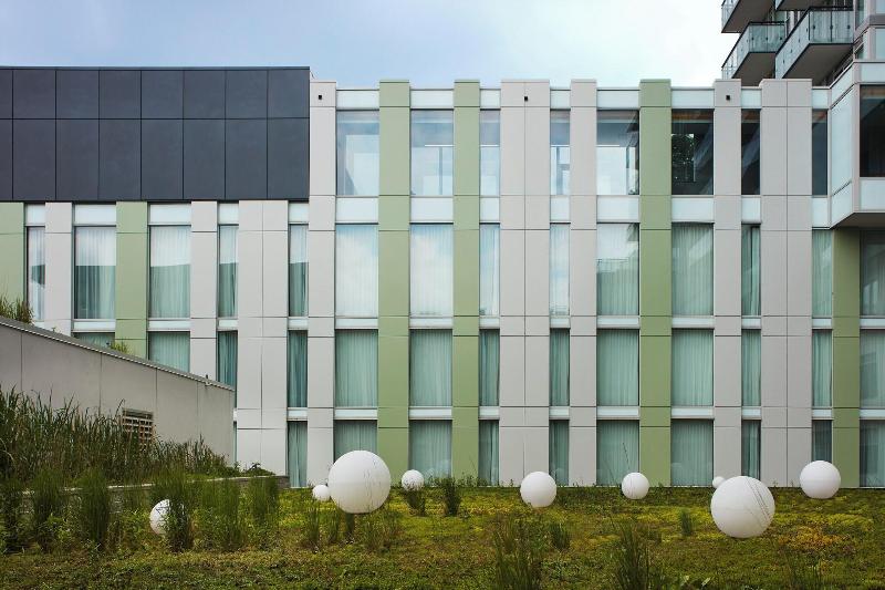 Como todos los Marriott. En este caso edificio nuevo en una zona de nueva construcción.
