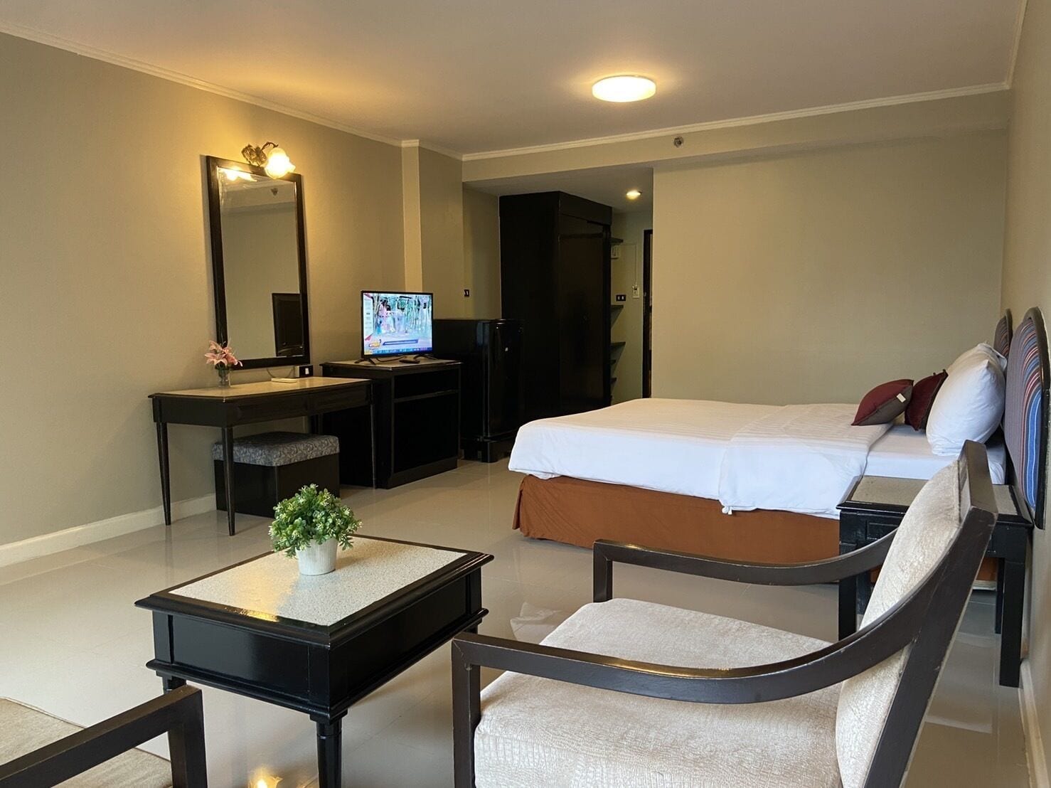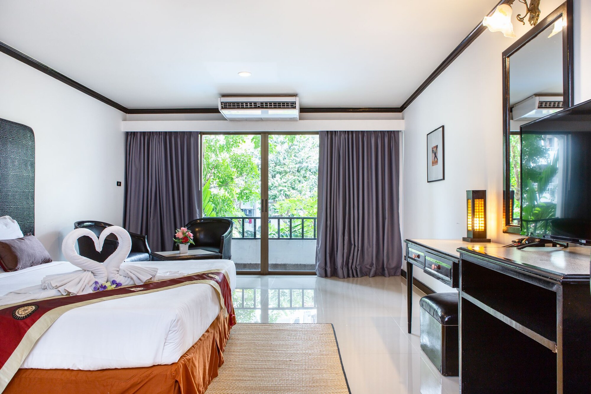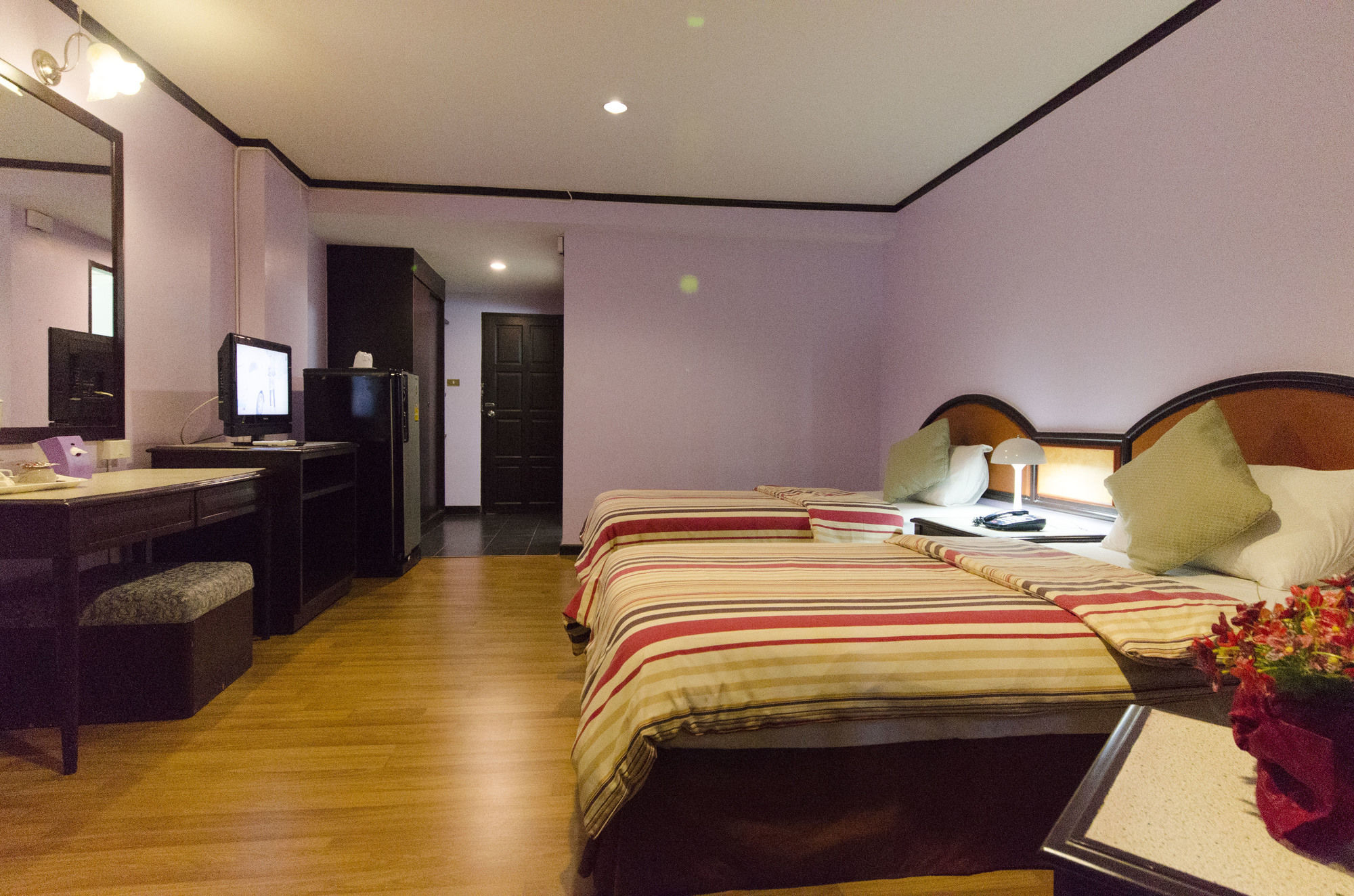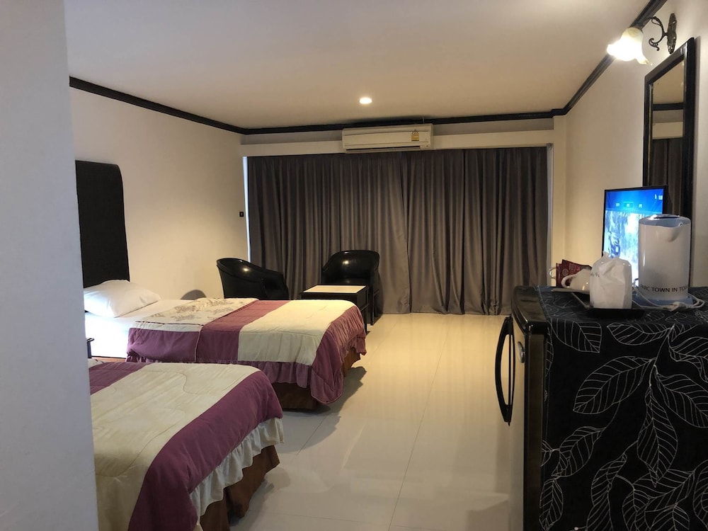 En Bangkok (Ramkhamhaeng), Town In Town Garden Resort te permite llegar cómodamente a Universidad de Ramkhamhaeng y Estadio de Rajamangala. Este hotel se encuentra cerca de Siam Niramit Bangkok y de Hospital de Bangkok.Habitaciones Te sentirás como en tu propia casa en una de las 215 habitaciones con aire acondicionado y frigorífico. La conexión a Internet wifi gratis te mantendrá en contacto con los tuyos; también podrás ver tu programa favorito en el televisor con canales por cable. El cuarto de baño está provisto de ducha y artículos de higiene personal gratuitos. Las comodidades incluyen botella de agua gratuita, además de un servicio de limpieza disponible todos los días.Servicios No te pierdas instalaciones recreativas como piscina al aire libre o gimnasio: ¡lo pasarás en grande!Servicios de negocios y otros Tendrás servicio de tintorería, servicio de recepción 24 horas y depósito de equipaje a tu disposición.