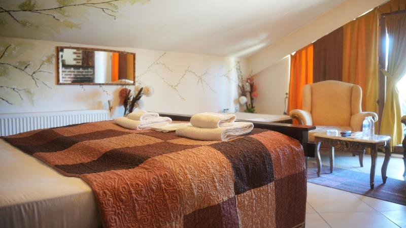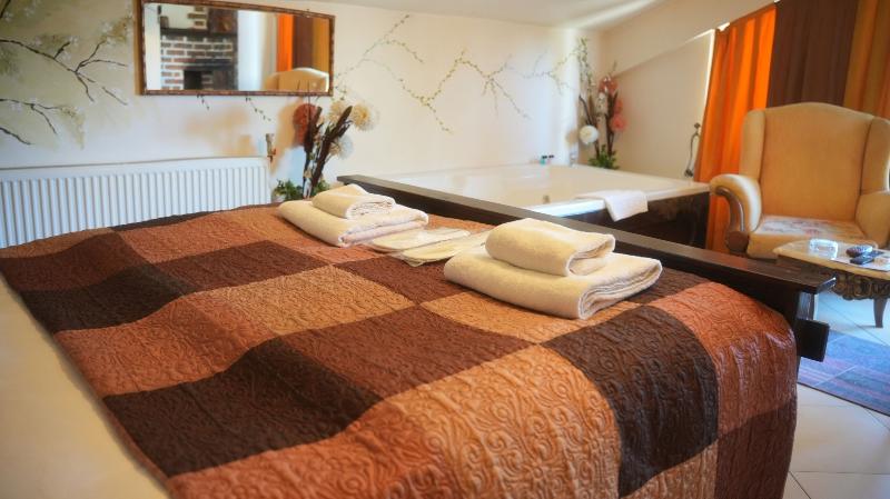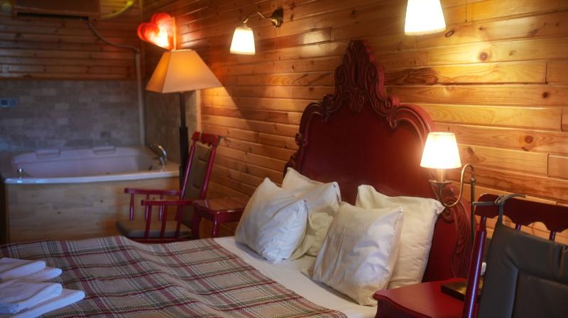 Diseñadas con detalles elegantes y texturas naturales, nuestras habitaciones combinan confort y esencia natural. Las habitaciones con vista al jardín y jacuzzi brindan momentos de relajación, mientras que aquellas con chimenea y jacuzzi crean un ambiente romántico. Nuestras habitaciones junto al río con jacuzzi y chimenea ofrecen una escapada inolvidable.