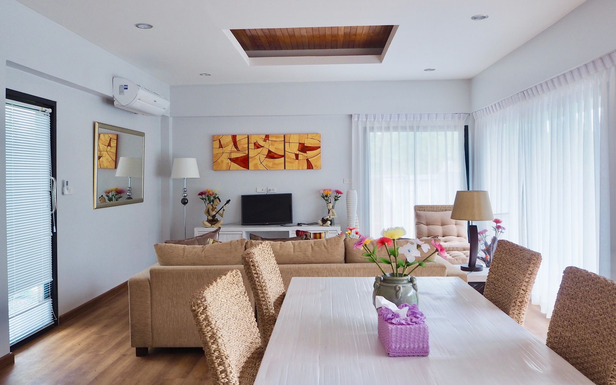 Si optas por alojarte en Triple Three Maikhao Villas de Mai Khão, estarás cerca de la playa y a apenas 6 min a pie de Playa Mai Khao. Además, esta villa se encuentra a 27,7 km de Playa Laem Singh y a 30,7 km de Parque temático Phuket Fantasea. Reserva una de las 4 habitaciones climatizadas, todas dotadas de cocina con frigorífico/congelador grande y placa de cocina. Las habitaciones disponen de balcón o patio. Con televisor LCD y conexión a Internet wifi gratis, tienes para elegir a la hora de entretenerte. Entre las comodidades, se incluyen microondas y hervidor eléctrico, además de un servicio de limpieza disponible una vez por estancia. Con una terraza y jardín donde descansar y comodidades como área de picnic, ¡no te faltará de nada! Tendrás check-in rápido, check-out rápido y servicio de tintorería a tu disposición. Hay un aparcamiento sin asistencia gratuito disponible.