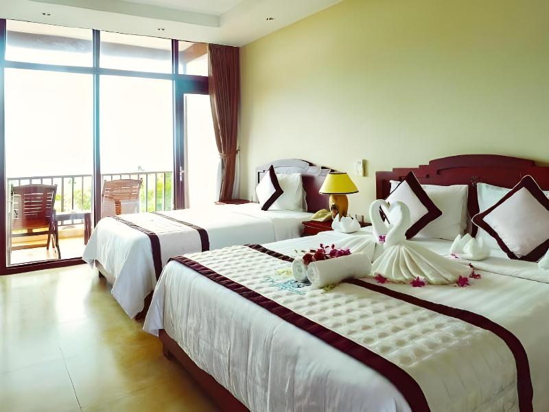 La ubicación del resort te cautivará. El hotel se encuentra en un jardín tropical de exuberantes plantas, palmeras que se mecen con la brisa y hermosas flores. La extensión de playa que se encuentra justo en la puerta atrae a los visitantes. A pesar de su privacidad y encanto, el hotel no está aislado de otras partes de la isla. Bendecido con una buena conexión, se puede llegar a la propiedad desde el aeropuerto y la estación de ferry en poco tiempo. El resort te da la bienvenida a sus apacibles y exquisitas instalaciones, donde encontrarás la tranquilidad que has estado buscando. Las habitaciones y bungalows son espaciosos y están decorados de una forma atractiva que parece encajar espléndidamente con el ambiente de la isla. Los bungalows más grandes junto a la playa son una auténtica delicia, con techos de paja que se elevan hacia el cielo, cómodos muebles de ratán y patios privados con vistas a la playa bordeada de cocoteros. Hay 37 unidades de alojamiento en total. Las instalaciones incluyen aire acondicionado, una cafetería, bar, restaurante y servicio de lavandería. El resort, ubicado en un jardín de cocoteros, incluye 6 habitaciones con ventilador, 10 bungalows con vistas al jardín, 7 bungalows con vistas al jardín y al mar, 11 bungalows frente al mar con vistas al mar y 3 bungalows familiares, todos con baño privado con ducha. Las comodidades de las habitaciones incluyen caja fuerte, minibar, aire acondicionado regulable individualmente y terraza. Durante tu tiempo libre, puedes visitar la zona de playa para disfrutar de un emocionante baño, pasear por la playa o tumbarte bajo el sol tropical para broncearte. Los amantes de la aventura pueden practicar snorkel y buceo. Los pescadores pueden disfrutar de la pesca en el mar. También hay una piscina cubierta con zona infantil y un bar junto a la piscina. También puedes relajarte en la terraza. El desayuno se sirve todas las mañanas en el resort.